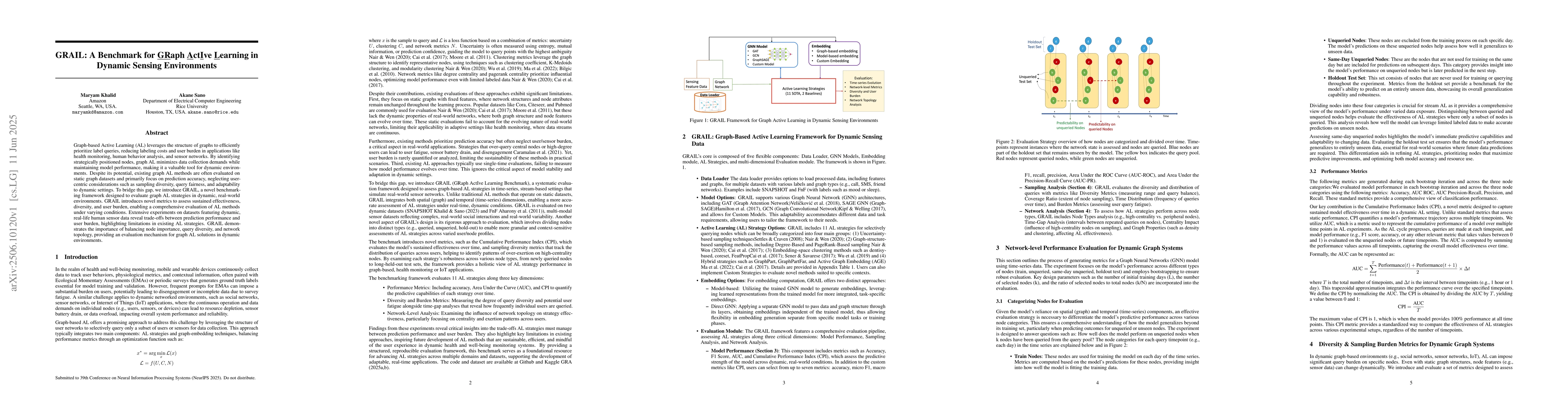 Graph-based Active Learning (AL) leverages the structure of graphs to efficiently prioritize label queries, reducing labeling costs and user burden in applications like health monitoring, human behavior analysis, and sensor networks. By identifying strategically positioned nodes, graph AL minimizes data collection demands while maintaining model performance, making it a valuable tool for dynamic environments. Despite its potential, existing graph AL methods are often evaluated on static graph datasets and primarily focus on prediction accuracy, neglecting user-centric considerations such as sampling diversity, query fairness, and adaptability to dynamic settings. To bridge this gap, we introduce GRAIL, a novel benchmarking framework designed to evaluate graph AL strategies in dynamic, real-world environments. GRAIL introduces novel metrics to assess sustained effectiveness, diversity, and user burden, enabling a comprehensive evaluation of AL methods under varying conditions. Extensive experiments on datasets featuring dynamic, real-life human sensor data reveal trade-offs between prediction performance and user burden, highlighting limitations in existing AL strategies. GRAIL demonstrates the importance of balancing node importance, query diversity, and network topology, providing an evaluation mechanism for graph AL solutions in dynamic environments.
