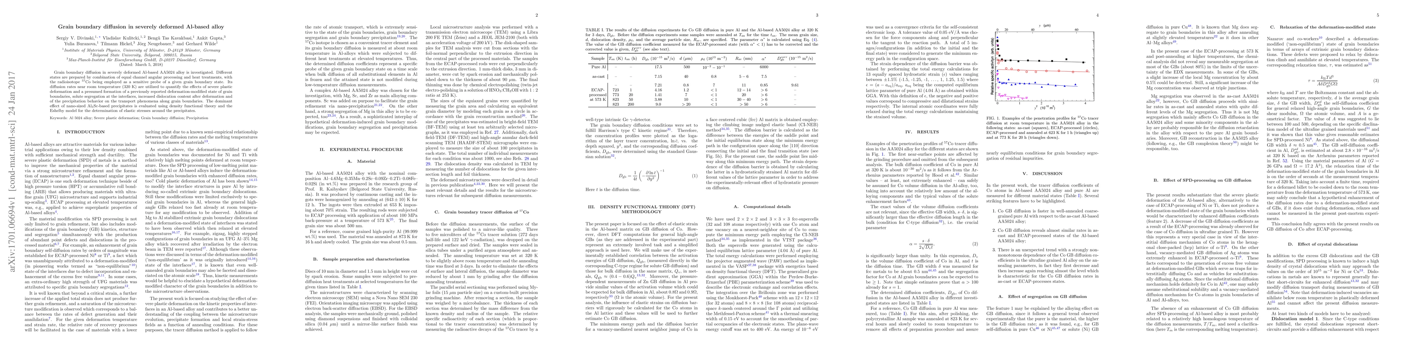 Grain boundary diffusion in severely deformed Al-based AA5024 alloy is investigated. Different states are prepared by combination of equal channel angular processing and heat treatments, with the radioisotope $^{57}$Co being employed as a sensitive probe of a given grain boundary state. Its diffusion rates near room temperature (320~K) are utilized to quantify the effects of severe plastic deformation and a presumed formation of a previously reported deformation-modified state of grain boundaries, solute segregation at the interfaces, increased dislocation content after deformation and of the precipitation behavior on the transport phenomena along grain boundaries. The dominant effect of nano-sized Al$_3$Sc-based precipitates is evaluated using density functional theory and the Eshelby model for the determination of elastic stresses around the precipitates.