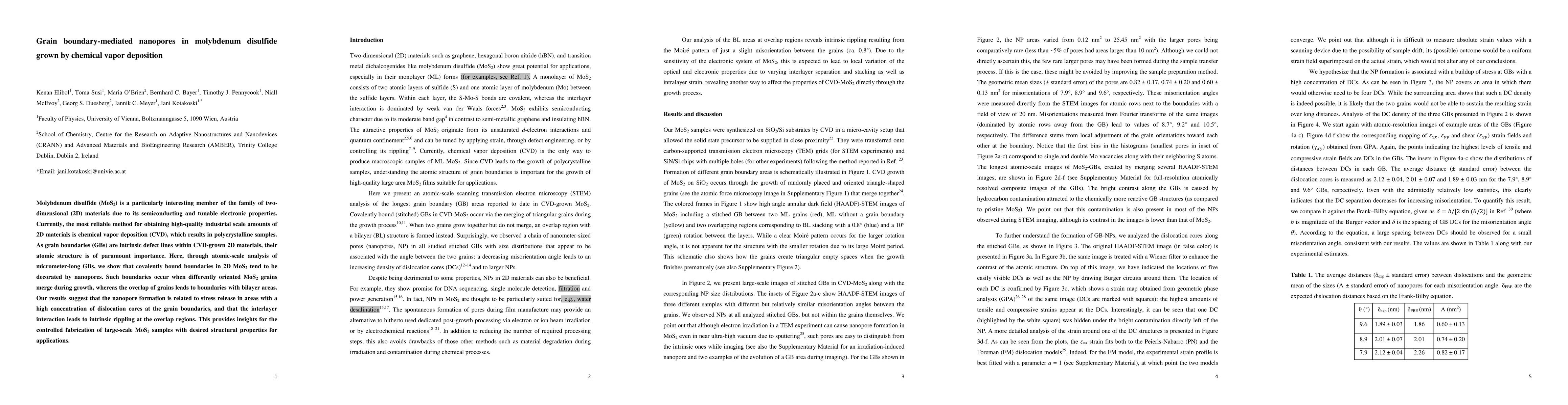 This study reveals that grain boundaries in CVD-grown molybdenum disulfide (MoS2) often contain nanopores, formed to relieve stress and due to interlayer interactions at grain boundary overlap regions. These findings offer valuable insights for fabricating large-scale MoS2 with tailored structural properties for technological applications.
