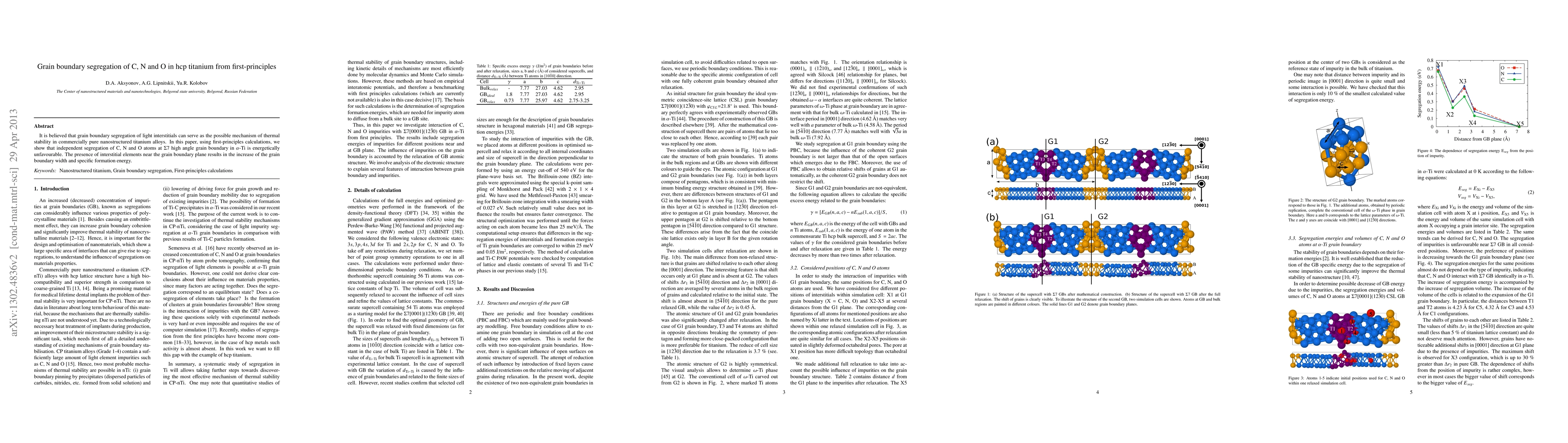 This research, using first-principles calculations, reveals that the independent segregation of C, N, and O atoms at a Σ7 high angle grain boundary in α-Ti is energetically unfavourable, suggesting that these interstitial elements do not contribute to thermal stability in nanostructured titanium alloys. Instead, their presence increases the grain boundary width and specific formation energy.