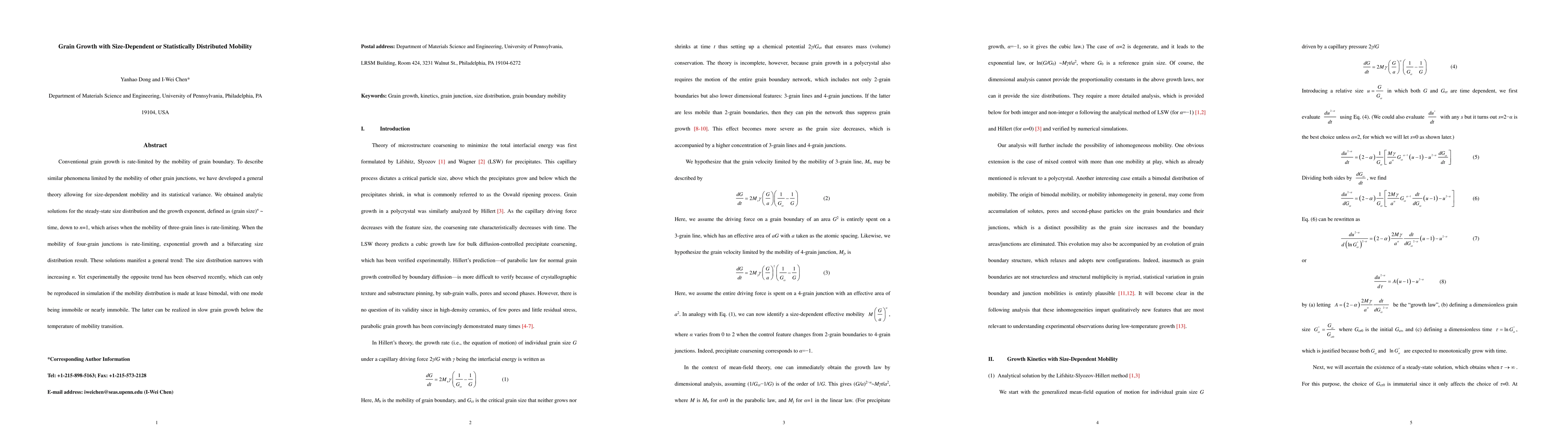 Conventional grain growth is rate-limited by the mobility of grain boundary. To describe similar phenomena limited by the mobility of other grain junctions, we have developed a general theory allowing for size-dependent mobility and its statistical variance. We obtained analytic solutions for the steady-state size distribution and the growth exponent, defined as (grain size)n ~ time, down to n=1, which arises when the mobility of three-grain lines is rate-limiting. When the mobility of four-grain junctions is rate-limiting, exponential growth and a bifurcating size distribution result. These solutions manifest a general trend: The size distribution narrows with increasing n. Yet experimentally the opposite trend has been observed recently, which can only be reproduced in simulation if the mobility distribution is made at lease bimodal, with one mode being immobile or nearly immobile. The latter can be realized in slow grain growth below the temperature of mobility transition.