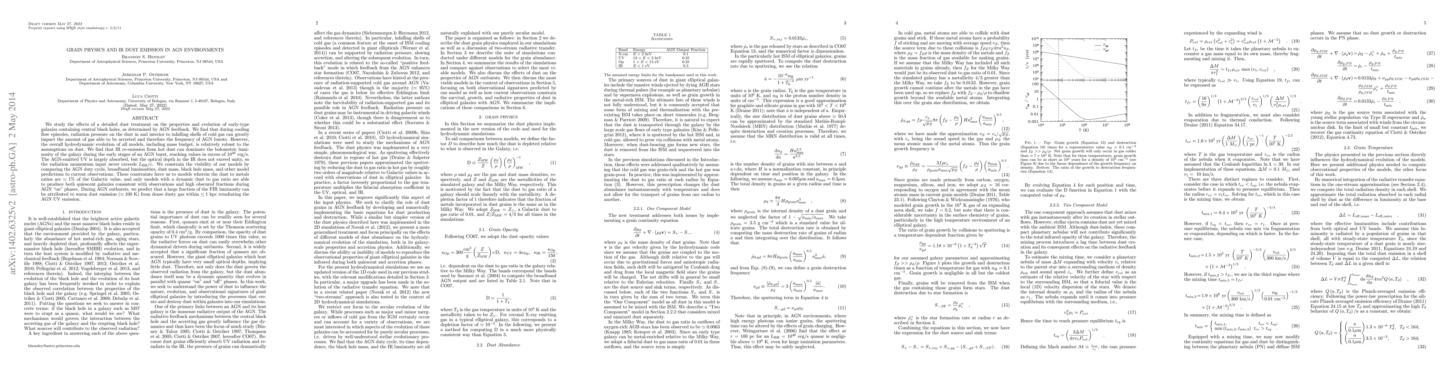 We study the effects of a detailed dust treatment on the properties and evolution of early-type galaxies containing central black holes, as determined by AGN feedback. We find that during cooling flow episodes, radiation pressure on the dust in and interior to infalling shells of cold gas can greatly impact the amount of gas able to be accreted and therefore the frequency of AGN bursts. However, the overall hydrodynamic evolution of all models, including mass budget, is relatively robust to the assumptions on dust. We find that IR re-emission from hot dust can dominate the bolometric luminosity of the galaxy during the early stages of an AGN burst, reaching values in excess of $10^{46}$ erg/s. The AGN-emitted UV is largely absorbed, but the optical depth in the IR does not exceed unity, so the radiation momentum input never exceeds $L_{\rm BH}/c$. We constrain the viability of our models by comparing the AGN duty cycle, broadband luminosities, dust mass, black hole mass, and other model predictions to current observations. These constraints force us to models wherein the dust to metals ratios are $\simeq 1%$ of the Galactic value, and only models with a dynamic dust to gas ratio are able to produce both quiescent galaxies consistent with observations and high obscured fractions during AGN "on" phases. During AGN outbursts, we predict that a large fraction of the FIR luminosity can be attributed to warm dust emission ($\simeq100$ K) from dense dusty gas within $\leq 1$ kpc reradiating the AGN UV emission.