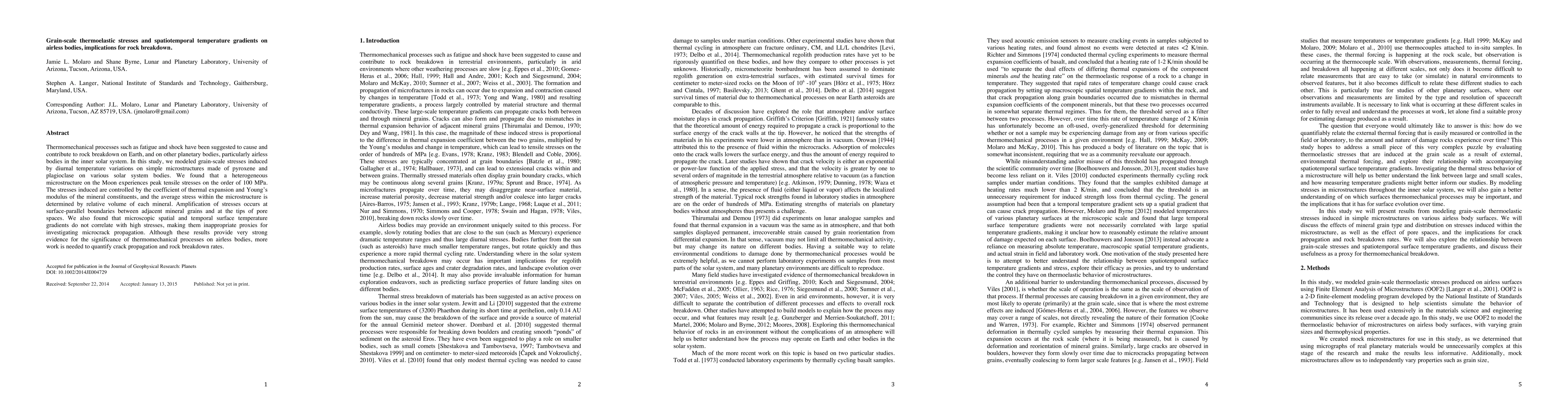 Thermomechanical processes such as fatigue and shock have been suggested to cause and contribute to rock breakdown on Earth, and on other planetary bodies, particularly airless bodies in the inner solar system. In this study, we modeled grain-scale stresses induced by diurnal temperature variations on simple microstructures made of pyroxene and plagioclase on various solar system bodies. We found that a heterogeneous microstructure on the Moon experiences peak tensile stresses on the order of 100 MPa. The stresses induced are controlled by the coefficient of thermal expansion and Young's modulus of the mineral constituents, and the average stress within the microstructure is determined by relative volume of each mineral. Amplification of stresses occurs at surface-parallel boundaries between adjacent mineral grains and at the tips of pore spaces. We also found that microscopic spatial and temporal surface temperature gradients do not correlate with high stresses, making them inappropriate proxies for investigating microcrack propagation. Although these results provide very strong evidence for the significance of thermomechanical processes on airless bodies, more work is needed to quantify crack propagation and rock breakdown rates.