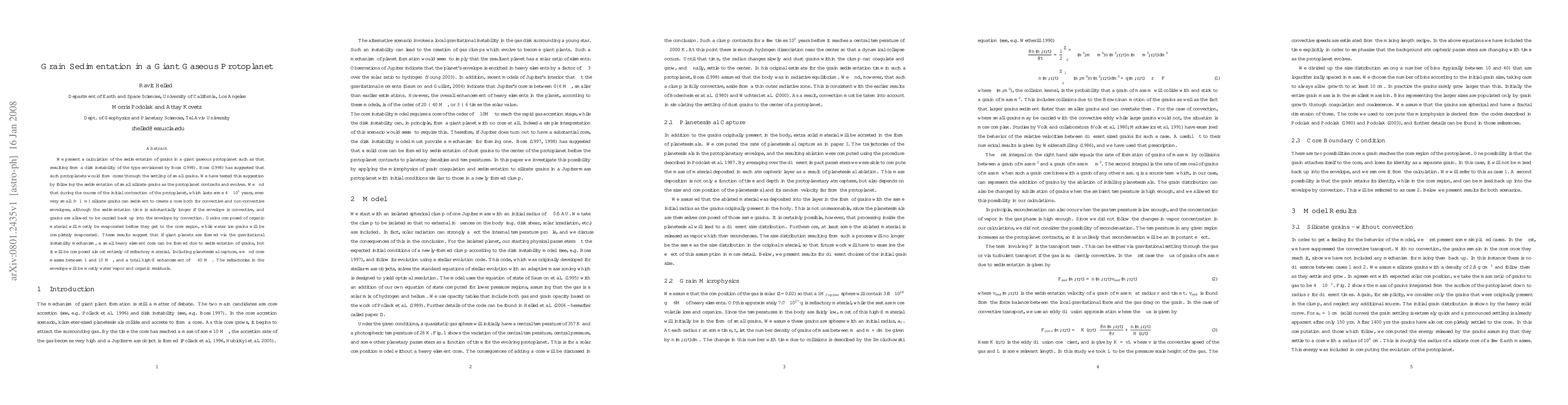 This study investigates the sedimentation of silicate grains in a giant gaseous protoplanet formed via disk instability, finding that small grains can form a core during initial contraction, primarily composed of refractory materials. The research concludes that such cores, formed through gravitational instability, will have masses between 1 and 10 Earth masses and will be enriched with heavy elements.