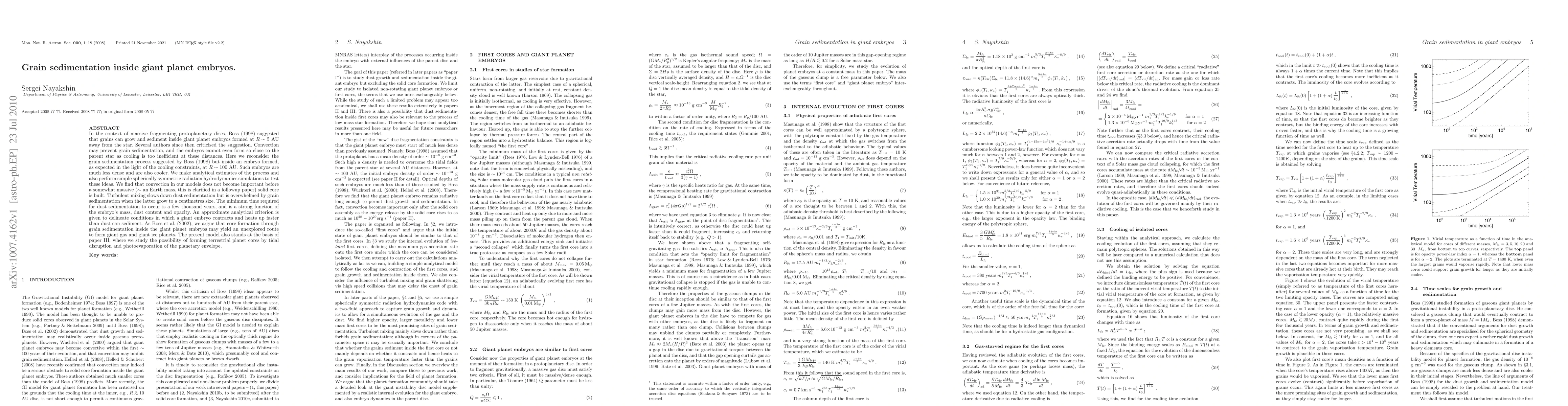 This paper revisits the grain sedimentation process inside giant planet embryos formed at greater distances (R ~ 100 AU) compared to previous suggestions, finding that sedimentation can occur despite convection and turbulent mixing, provided the grains grow to centimetre sizes. The study concludes that this process could be a viable route for forming giant gas and ice planets.