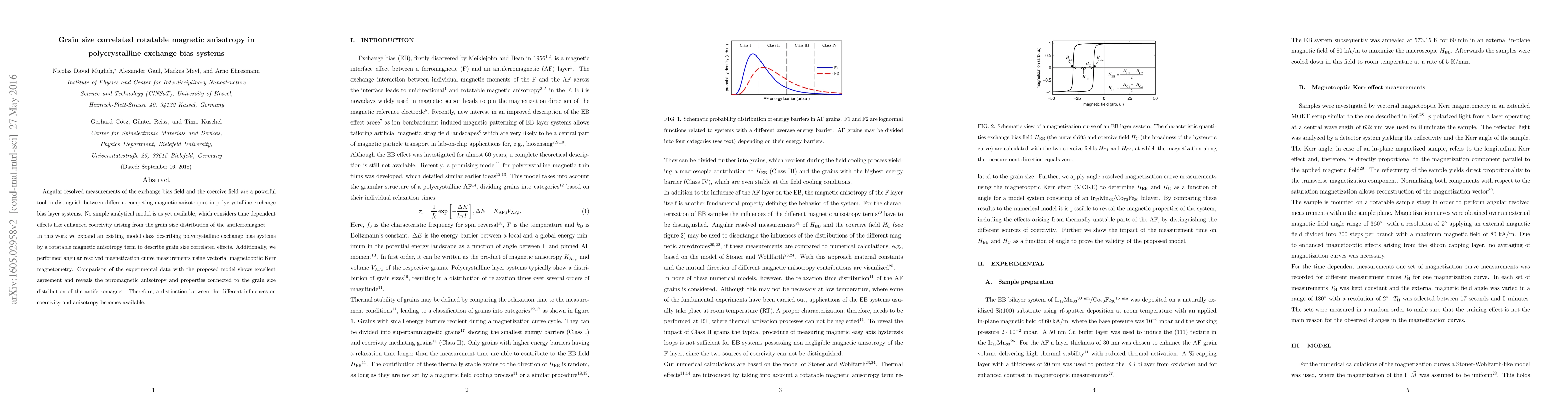 This paper proposes an extended model to describe the grain size correlated rotatable magnetic anisotropy in polycrystalline exchange bias systems, validated by angular resolved magnetization measurements. The model successfully distinguishes between various magnetic anisotropies and the effects of antiferromagnet grain size distribution on coercivity.