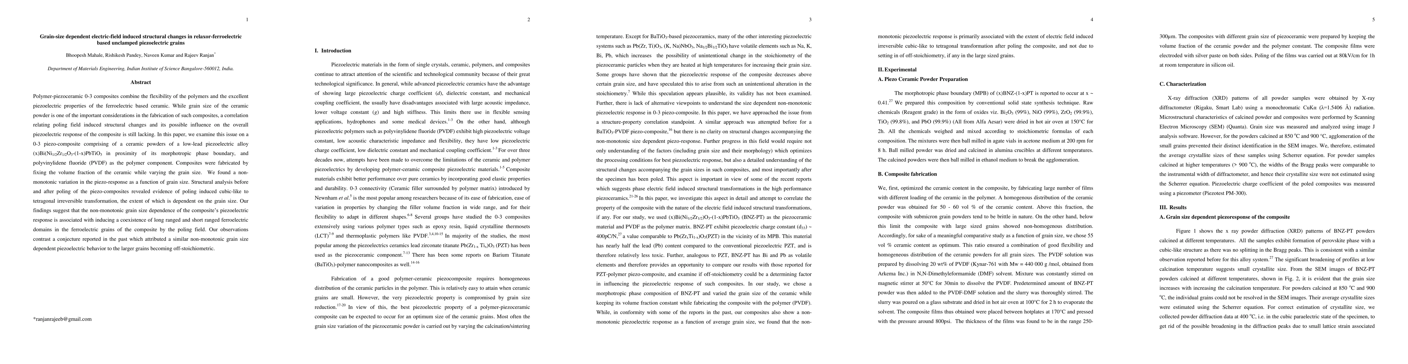 This paper investigates how grain size in a relaxor-ferroelectric based piezoelectric alloy influences electric-field induced structural changes in polymer-piezoceramic 0-3 composites. It finds a non-monotonic piezo-response variation with grain size and reveals a grain-size dependent irreversible cubic-to-tetragonal structural transformation upon poling.