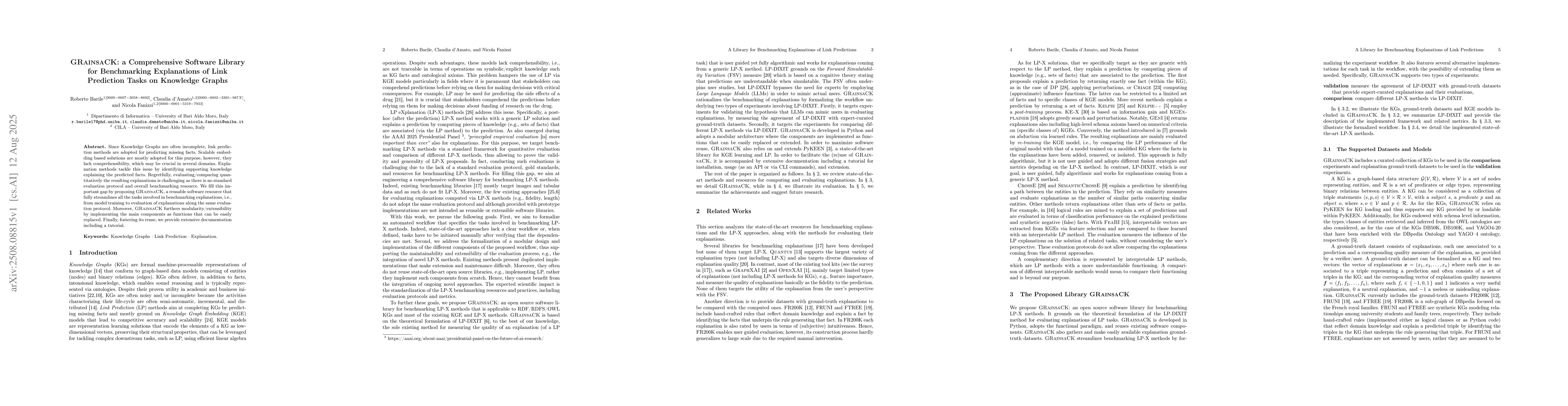 Since Knowledge Graphs are often incomplete, link prediction methods are adopted for predicting missing facts. Scalable embedding based solutions are mostly adopted for this purpose, however, they lack comprehensibility, which may be crucial in several domains. Explanation methods tackle this issue by identifying supporting knowledge explaining the predicted facts. Regretfully, evaluating/comparing quantitatively the resulting explanations is challenging as there is no standard evaluation protocol and overall benchmarking resource. We fill this important gap by proposing GRainsaCK, a reusable software resource that fully streamlines all the tasks involved in benchmarking explanations, i.e., from model training to evaluation of explanations along the same evaluation protocol. Moreover, GRainsaCK furthers modularity/extensibility by implementing the main components as functions that can be easily replaced. Finally, fostering its reuse, we provide extensive documentation including a tutorial.