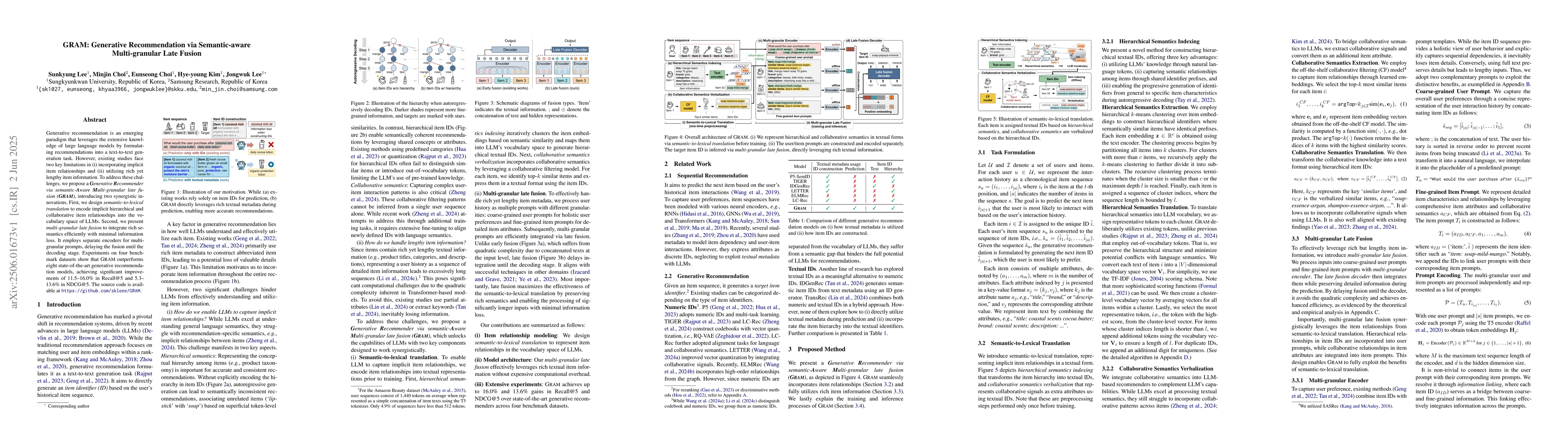 The research proposes GRAM, a Generative Recommender via semantic-Aware Multi-granular late fusion, addressing limitations in generative recommendation by encoding implicit relationships and utilizing rich item information through semantic-to-lexical translation and multi-granular late fusion techniques.
