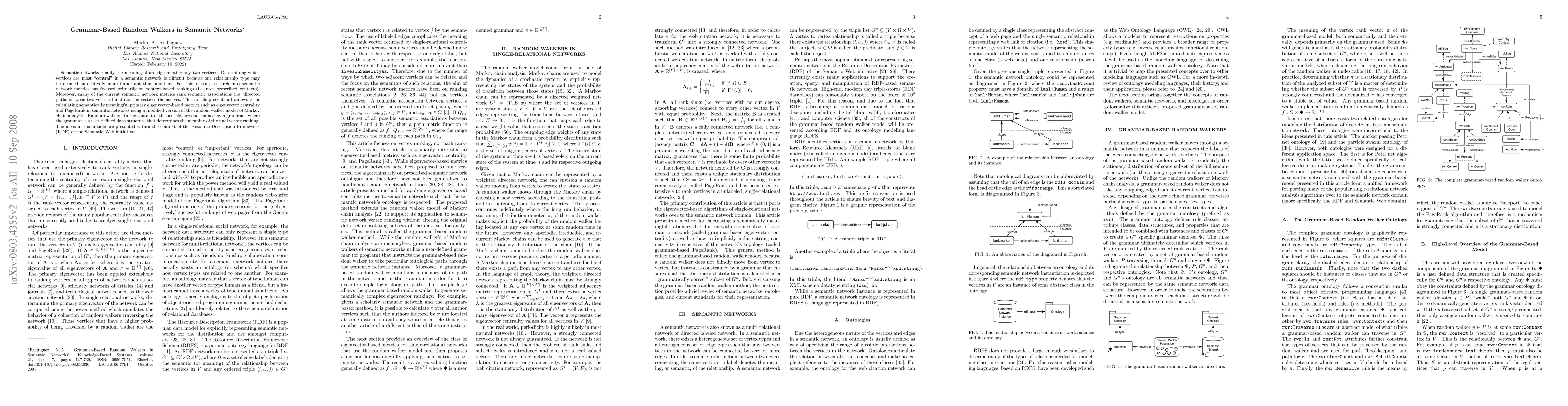 This paper introduces a framework for calculating semantic network metrics using a modified random walker model that incorporates user-defined grammar, enabling more nuanced centrality measures in semantic networks.