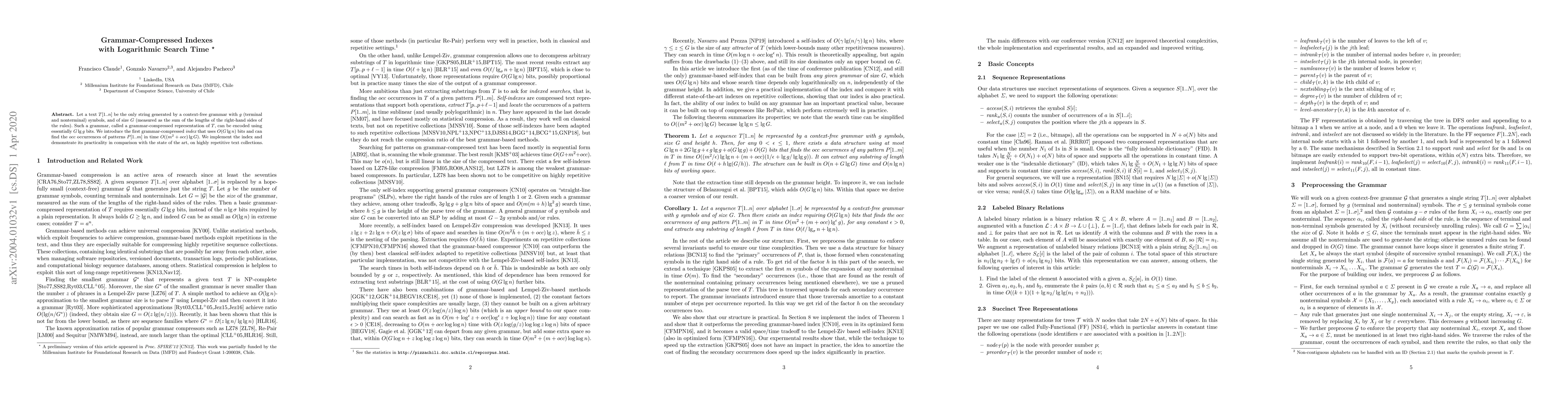 This paper introduces a novel grammar-compressed index for texts generated by context-free grammars, using $O(G\lg n)$ bits and enabling pattern searches in $O((m^2+occ)\lg G)$ time, demonstrating practical efficiency on repetitive text collections.