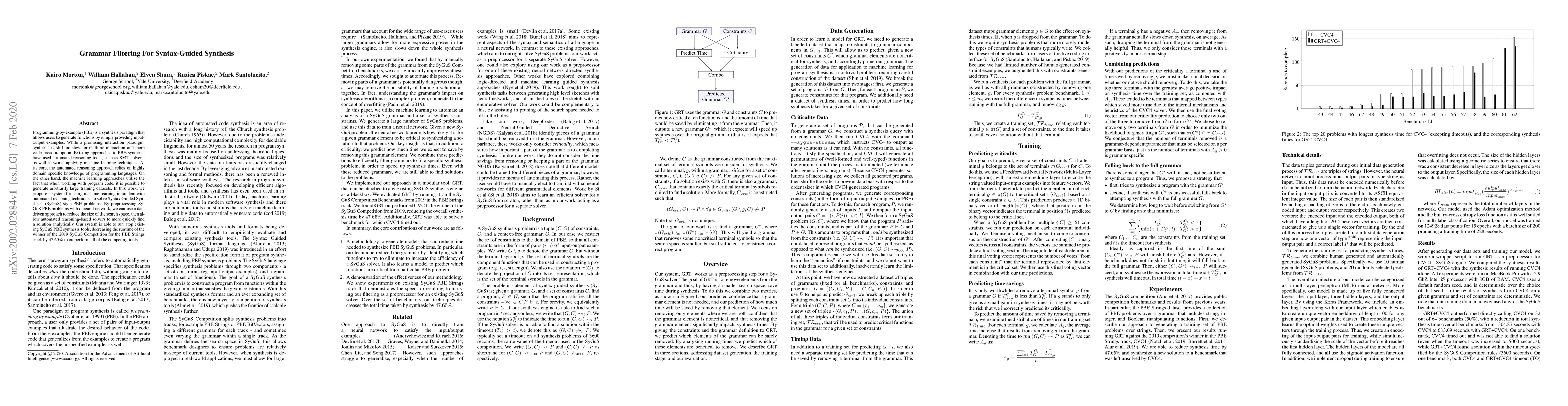 This paper proposes a hybrid system combining machine learning and automated reasoning to enhance Syntax-Guided Synthesis (SyGuS) for Programming-by-Example. By using a neural network to filter and reduce the problem's complexity, the system significantly decreases runtime, improving the performance of existing SyGuS tools by 47.65% on the PBE Strings track.