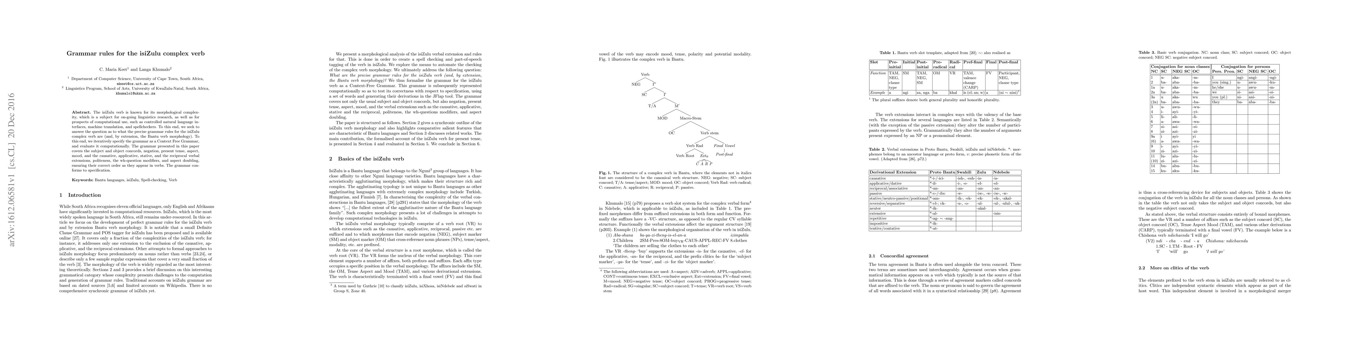 The isiZulu verb is known for its morphological complexity, which is a subject for on-going linguistics research, as well as for prospects of computational use, such as controlled natural language interfaces, machine translation, and spellcheckers. To this end, we seek to answer the question as to what the precise grammar rules for the isiZulu complex verb are (and, by extension, the Bantu verb morphology). To this end, we iteratively specify the grammar as a Context Free Grammar, and evaluate it computationally. The grammar presented in this paper covers the subject and object concords, negation, present tense, aspect, mood, and the causative, applicative, stative, and the reciprocal verbal extensions, politeness, the wh-question modifiers, and aspect doubling, ensuring their correct order as they appear in verbs. The grammar conforms to specification.