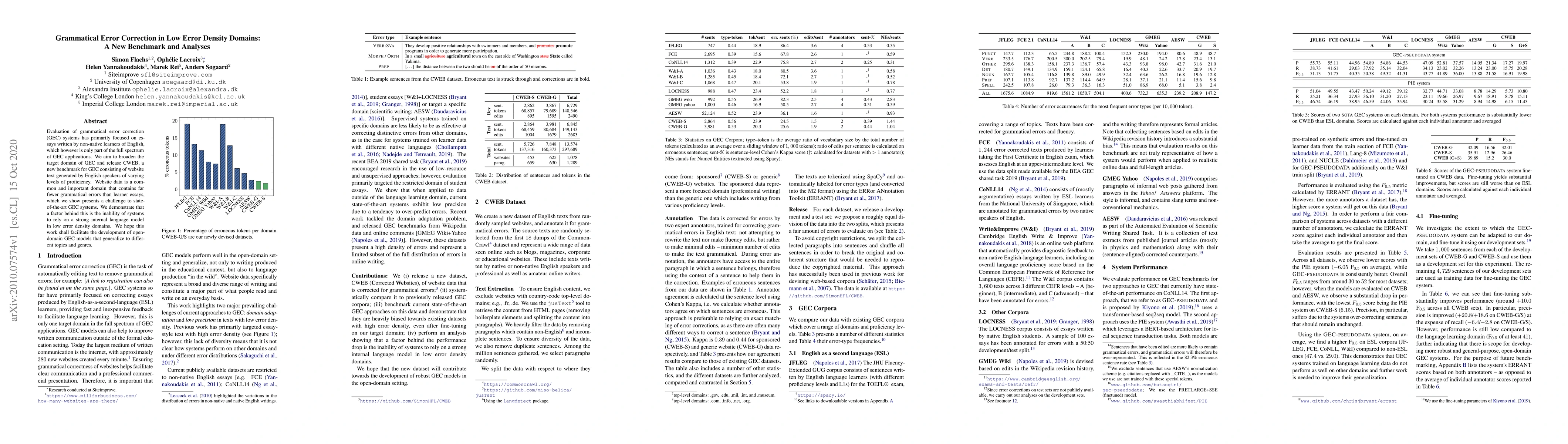 This paper introduces CWEB, a new benchmark for grammatical error correction (GEC) focused on website text from English speakers, highlighting the challenge GEC systems face in low error density domains. The study reveals that current GEC models struggle due to their inability to leverage strong internal language models in such contexts.