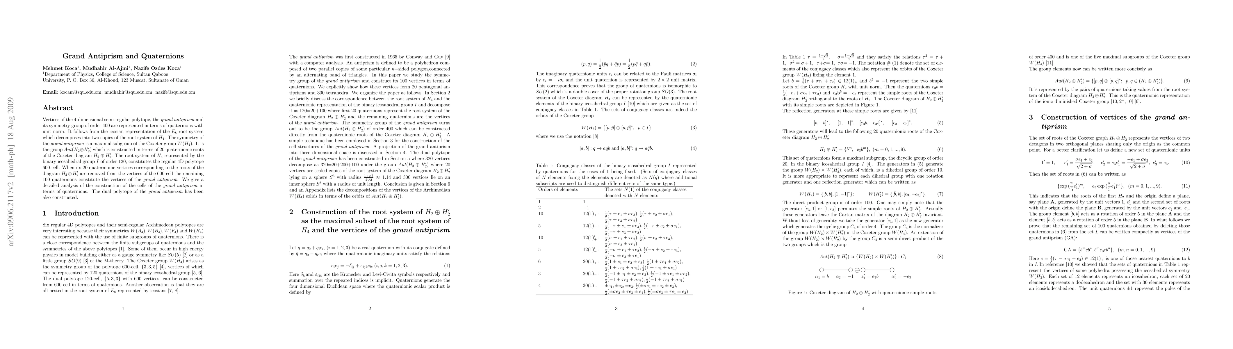 This paper represents the vertices and symmetry group of the 4-dimensional semi-regular polytope, the grand antiprism, using quaternions. It explores the decomposition of the $E_{8}$ root system and its relation to the Coxeter group $W(H_{4})$, revealing the grand antiprism's maximal subgroup symmetry.
