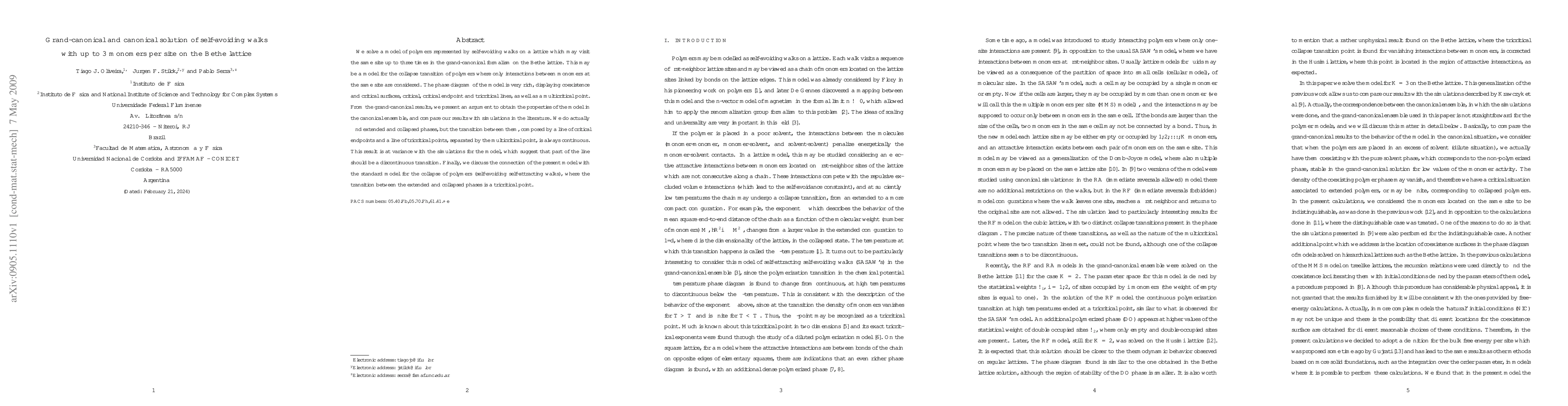 This paper studies self-avoiding walks on a Bethe lattice where each site can accommodate up to three monomers, revealing a complex phase diagram with various critical lines and points. The grand-canonical results suggest a continuous transition between extended and collapsed phases, contrary to some simulation findings that propose a discontinuous transition.