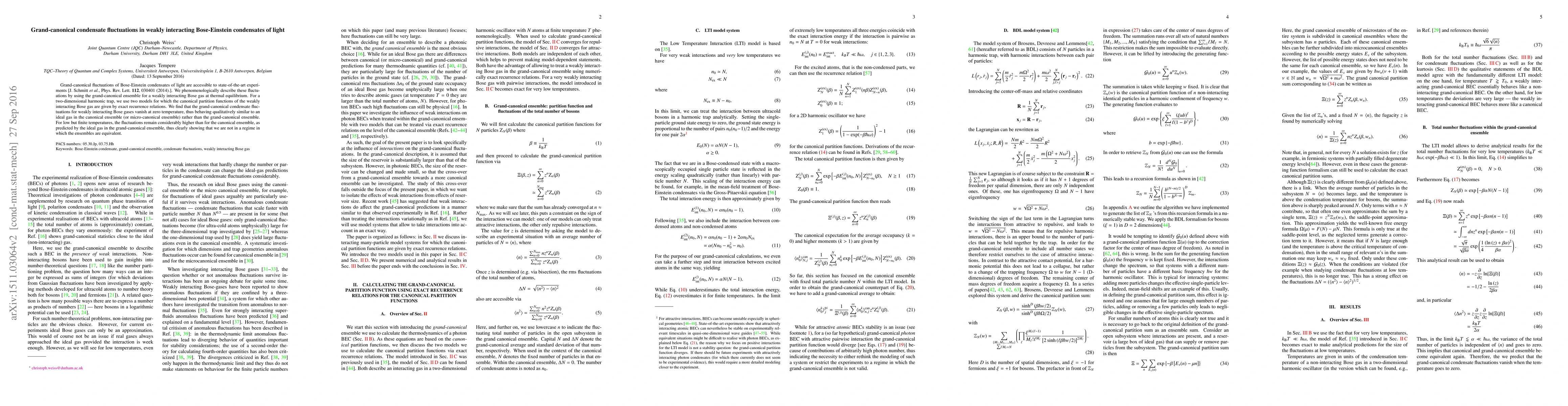 Grand-canonical fluctuations of Bose-Einstein condensates of light are accessible to state-of-the-art experiments [J. Schmitt et al., Phys. Rev. Lett. 112, 030401 (2014).]. We phenomenologically describe these fluctuations by using the grand-canonical ensemble for a weakly interacting Bose gas at thermal equilibrium. For a two-dimensional harmonic trap, we use two models for which the canonical partition functions of the weakly interacting Bose gas are given by exact recurrence relations. We find that the grand-canonical condensate fluctuations for weakly interacting Bose gases vanish at zero temperature, thus behaving qualitatively similar to an ideal gas in the canonical ensemble (or micro-canonical ensemble) rather than the grand-canonical ensemble. For low but finite temperatures, the fluctuations remain considerably higher than for the canonical ensemble, as predicted by the ideal gas in the grand-canonical ensemble, thus clearly showing that we are not in a regime in which the ensembles are equivalent.