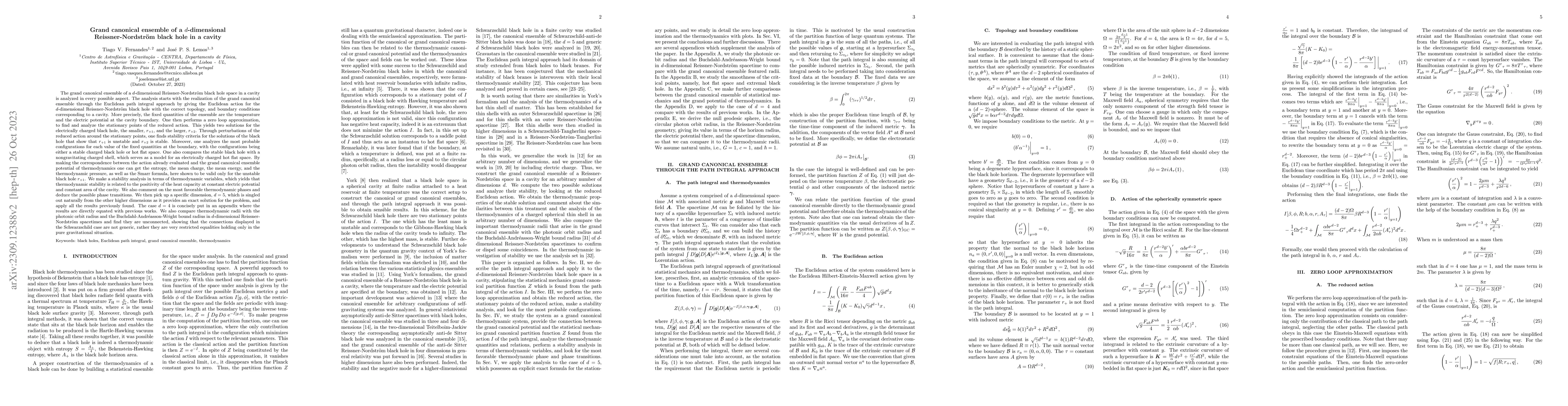 This paper analyzes the grand canonical ensemble of a $d$-dimensional Reissner-Nordström black hole in a cavity using the Euclidean path integral approach. It identifies stable and unstable black hole solutions, discusses thermodynamic quantities, and finds that thermodynamic stability is linked to the positivity of heat capacity and area. The study highlights that $d=5$ provides an exact solution and compares thermodynamic radii with other bounds, showing limited connections in higher dimensions.