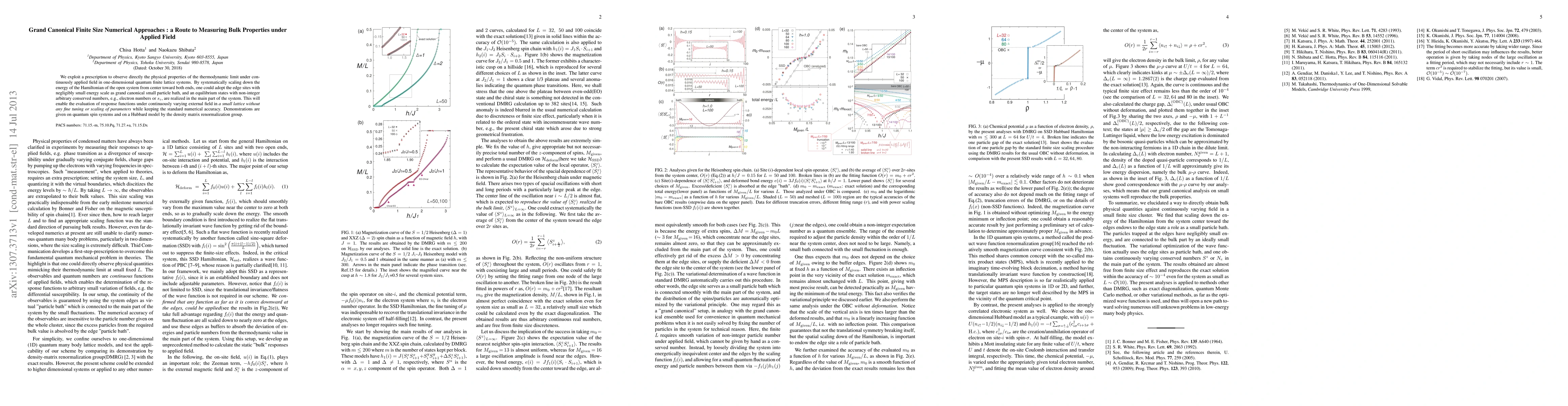 We exploit a prescription to observe directly the physical properties of the thermodynamic limit under continuously applied field in one-dimensional quantum finite lattice systems. By systematically scaling down the energy of the Hamiltonian of the open system from center toward both ends, one could adopt the edge sites with negligibly small energy scale as a "grand canonical" small particle bath, and an equilibrium states with non-integer arbitrary conserved numbers, e.g., electron numbers or sz, are realized in the main part of the system. This will enable the evaluation of the response functions under continuously varying external field in a small lattice without any fine tuning or scaling of parameters while keeping the standard numerical accuracy. Demonstrations are given on quantum spin systems as well as on a Hubbard model by the density matrix renormalization group calculation.