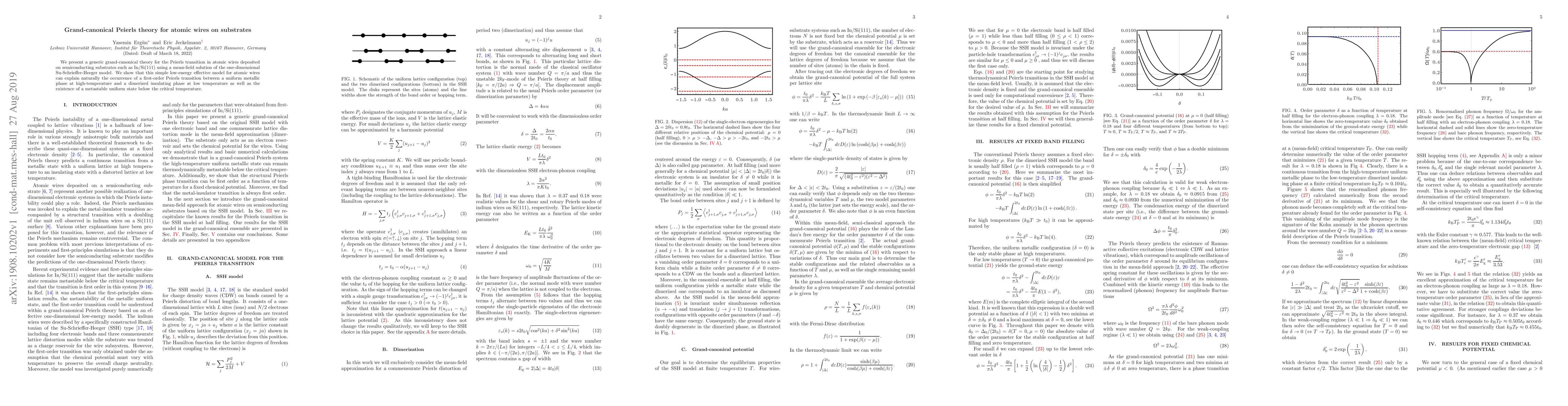The paper develops a grand-canonical theory for the Peierls transition in atomic wires on semiconducting substrates, demonstrating that a one-dimensional Su-Schrieffer-Heeger model can explain the transition from a metallic to a dimerized insulating phase, and identifies a metastable uniform state below the critical temperature.