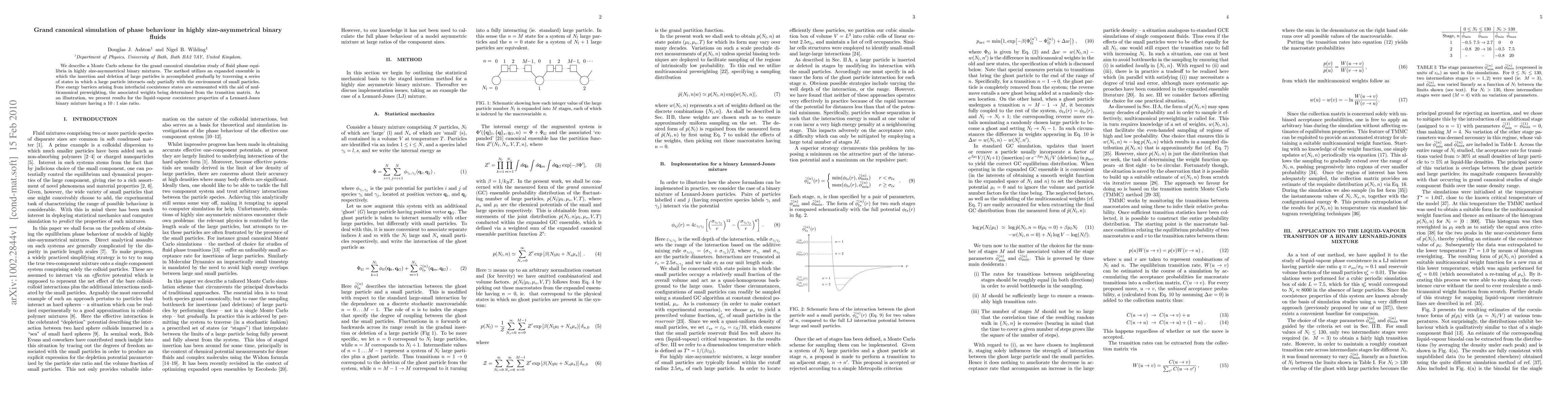 We describe a Monte Carlo scheme for the grand canonical simulation study of fluid phase equilibria in highly size-asymmetrical binary mixtures. The method utilizes an expanded ensemble in which the insertion and deletion of large particles is accomplished {\em gradually} by traversing a series of states in which a large particle interacts only partially with the environment of small particles. Free energy barriers arising from interfacial coexistence states are surmounted with the aid of multicanonical preweighting, the associated weights being determined from the transition matrix. As an illustration, we present results for the liquid-vapour coexistence properties of a Lennard-Jones binary mixture having a 10:1 size ratio.