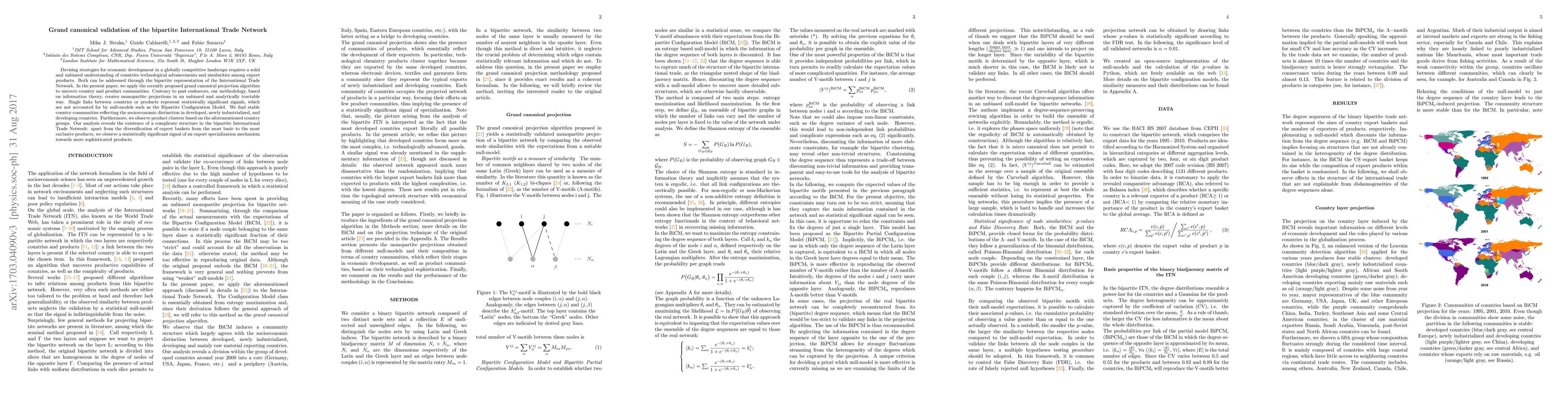 Devising strategies for economic development in a globally competitive landscape requires a solid and unbiased understanding of countries technological advancements and similarities among export products. Both can be addressed through the bipartite representation of the International Trade Network. In the present paper, we apply the recently proposed grand canonical projection algorithm to uncover country and product communities. Contrary to past endeavors, our methodology, based on information theory, creates monopartite projections in an unbiased and analytically tractable way. Single links between countries or products represent statistically significant signals, which are not accounted for by null-models such as the Bipartite Configuration Model. We find stable country communities reflecting the socioeconomic distinction in developed, newly industrialized, and developing countries. Furthermore, we observe product clusters based on the aforementioned country groups. Our analysis reveals the existence of a complicate structure in the bipartite International Trade Network: apart from the diversification of export baskets from the most basic to the most exclusive products, we observe a statistically significant signal of an export specialization mechanism towards more sophisticated products.