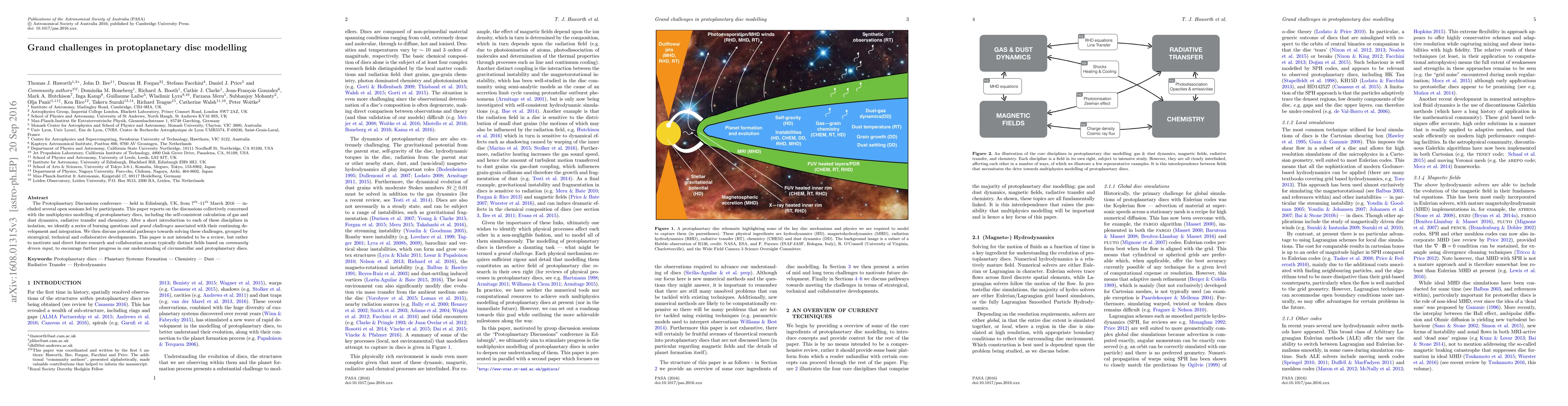 The Protoplanetary Discussions conference --- held in Edinburgh, UK, from 7th --11th March 2016 --- included several open sessions led by participants. This paper reports on the discussions collectively concerned with the multiphysics modelling of protoplanetary discs, including the self-consistent calculation of gas and dust dynamics, radiative transfer and chemistry. After a short introduction to each of these disciplines in isolation, we identify a series of burning questions and grand challenges associated with their continuing development and integration. We then discuss potential pathways towards solving these challenges, grouped by strategical, technical and collaborative developments. This paper is not intended to be a review, but rather to motivate and direct future research and collaboration across typically distinct fields based on \textit{community driven input}, to encourage further progress in our understanding of circumstellar and protoplanetary discs.