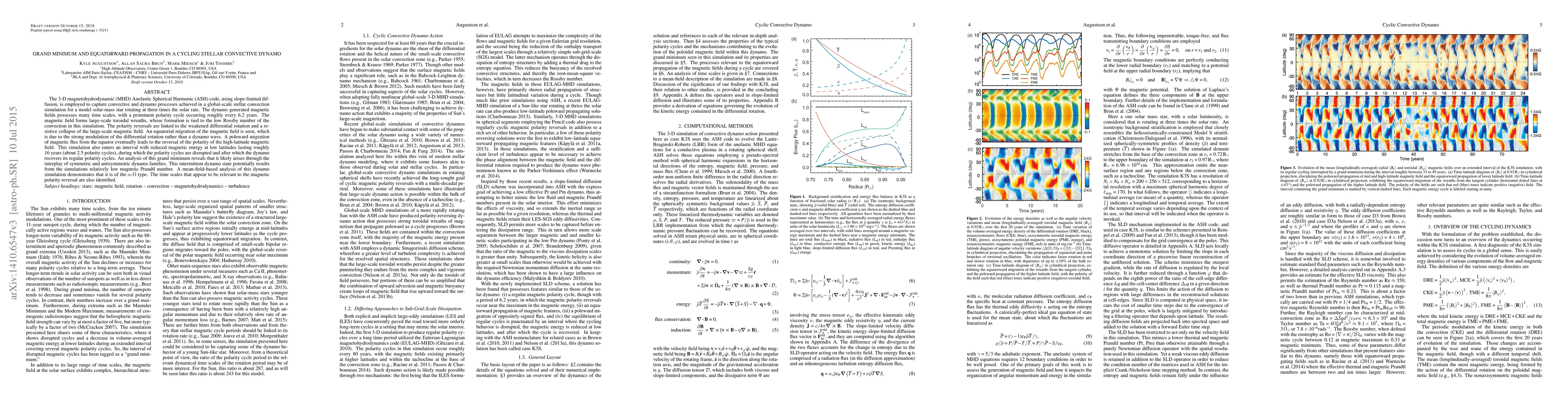 This study uses a 3-D MHD code to simulate a solar-mass star's dynamo, revealing a grand minimum and equatorward migration of magnetic fields tied to differential rotation modulation. The simulation shows a grand minimum likely due to the interplay of symmetric and antisymmetric dynamo families, followed by a recovery of regular polarity cycles.