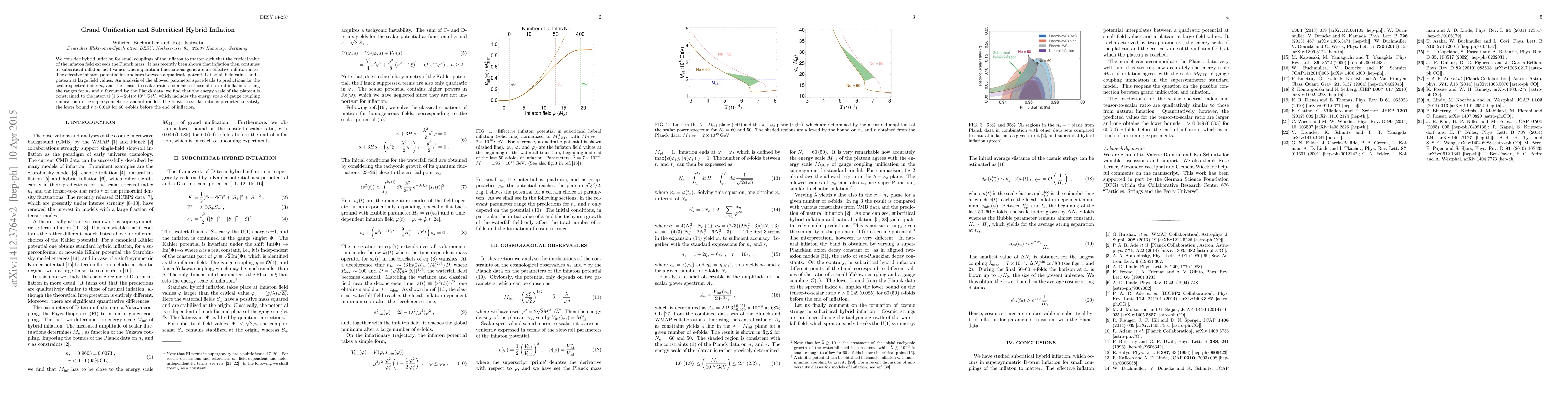 This paper explores hybrid inflation with small inflaton couplings, demonstrating that inflation persists at subcritical field values due to quantum fluctuations generating an effective inflaton mass. The study finds that the energy scale of the plateau aligns with gauge coupling unification, predicting a tensor-to-scalar ratio lower bound of r > 0.049.