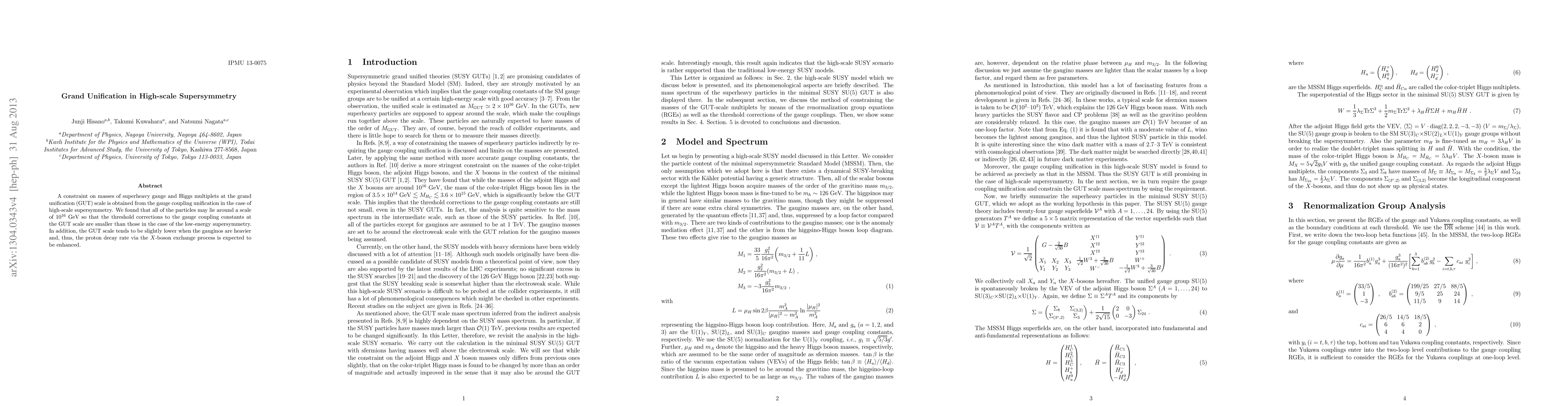 This paper explores high-scale supersymmetry and finds that superheavy gauge and Higgs particles likely reside around 10^16 GeV, optimizing gauge coupling unification and reducing threshold corrections. The heavier gauginos lead to a slightly lower GUT scale and an increased proton decay rate via X-boson exchange.