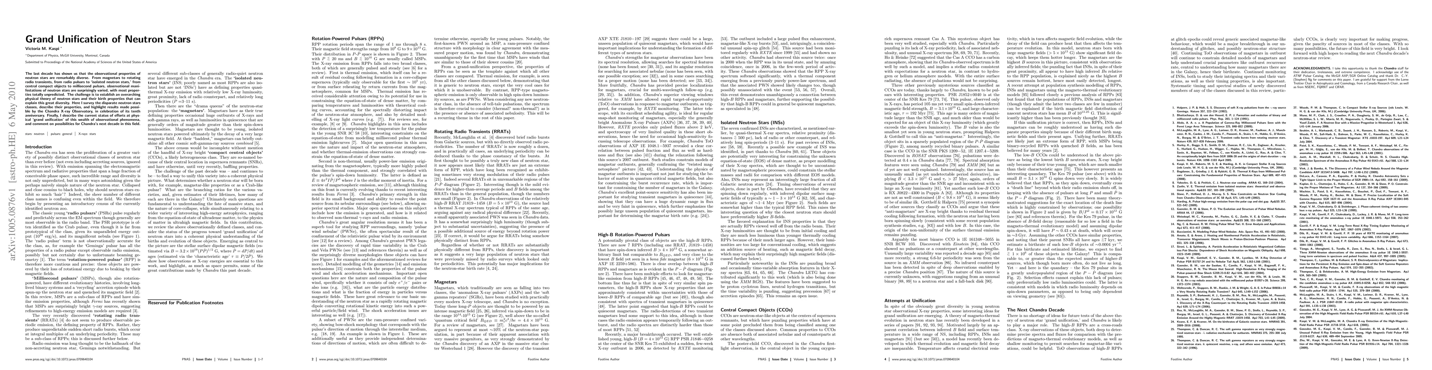 The last decade has shown us that the observational properties of neutron stars are remarkably diverse. From magnetars to rotating radio transients, from radio pulsars to `isolated neutron stars,' from central compact objects to millisecond pulsars, observational manifestations of neutron stars are surprisingly varied, with most properties totally unpredicted. The challenge is to establish an overarching physical theory of neutron stars and their birth properties that can explain this great diversity. Here I survey the disparate neutron stars classes, describe their properties, and highlight results made possible by the Chandra X-ray Observatory, in celebration of its tenth anniversary. Finally, I describe the current status of efforts at physical `grand unification' of this wealth of observational phenomena, and comment on possibilities for Chandra's next decade in this field.