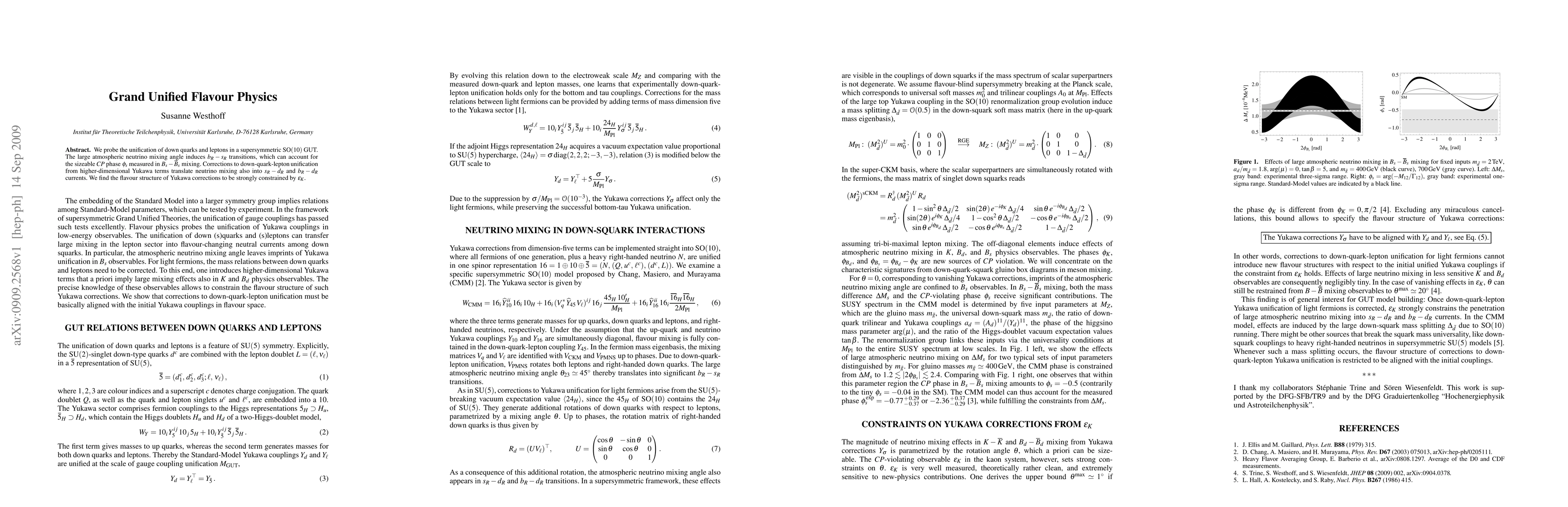 We probe the unification of down quarks and leptons in a supersymmetric SO(10) GUT. The large atmospheric neutrino mixing angle induces bR-sR transitions, which can account for the sizeable CP phase measured in Bs-Bsbar mixing. Corrections to down-quark-lepton unification from higher-dimensional Yukawa terms translate neutrino mixing also into sR-dR and bR-dR currents. We find the flavour structure of Yukawa corrections to be strongly constrained by epsilonK.