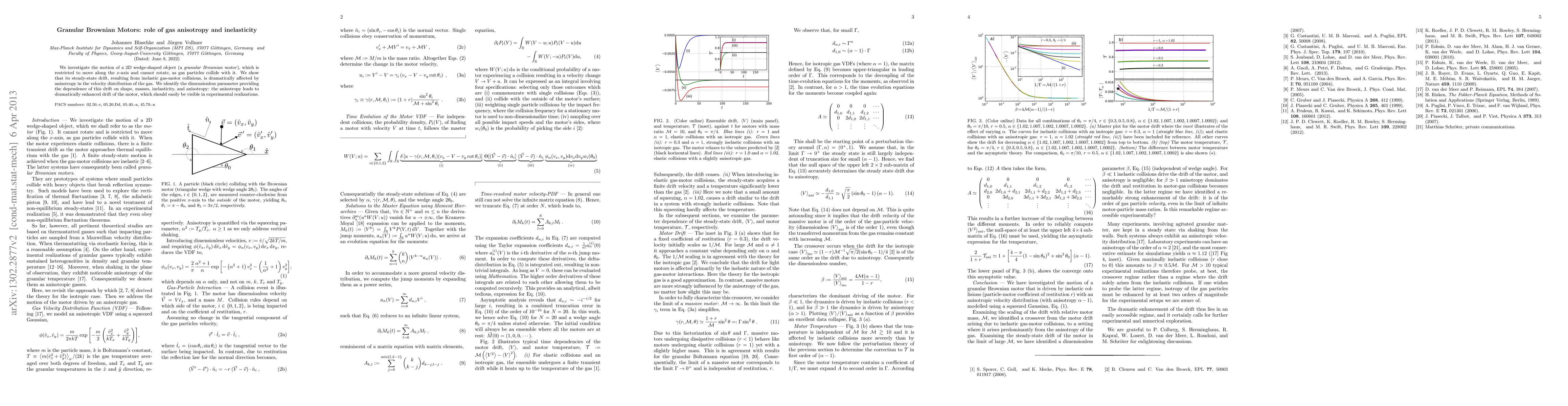 We investigate the motion of a wedge-shaped object (a granular Brownian motor), which is restricted to move along the x-axis and cannot rotate, as gas particles collide with it. We show that its steady-state drift, resulting from inelastic gas-motor collisions, is dramatically affected by anisotropy in the velocity distribution of the gas. We identify the dimensionless parameter providing the dependence of this drift on shape, masses, inelasticity, and anisotropy: the anisotropy leads to a dramatic breaking of equipartition, which should easily be visible in experimental realizations.