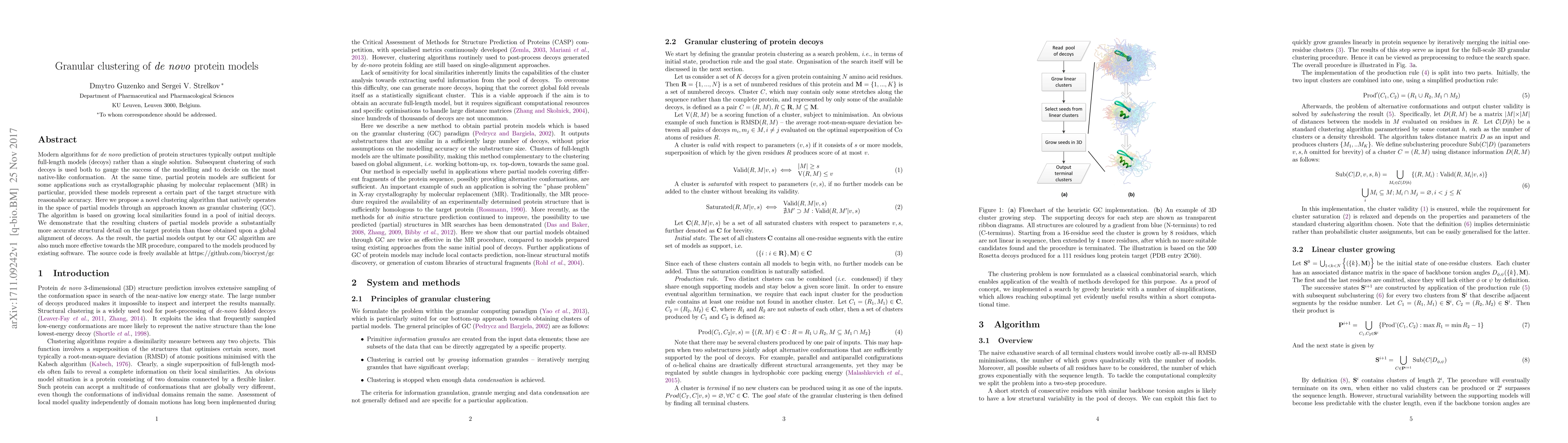 Modern algorithms for de novo prediction of protein structures typically output multiple full-length models (decoys) rather than a single solution. Subsequent clustering of such decoys is used both to gauge the success of the modelling and to decide on the most native-like conformation. At the same time, partial protein models are sufficient for some applications such as crystallographic phasing by molecular replacement (MR) in particular, provided these models represent a certain part of the target structure with reasonable accuracy. Here we propose a novel clustering algorithm that natively operates in the space of partial models through an approach known as granular clustering (GC). The algorithm is based on growing local similarities found in a pool of initial decoys. We demonstrate that the resulting clusters of partial models provide a substantially more accurate structural detail on the target protein than those obtained upon a global alignment of decoys. As the result, the partial models output by our GC algorithm are also much more effective towards the MR procedure, compared to the models produced by existing software. The source code is freely available at https://github.com/biocryst/gc