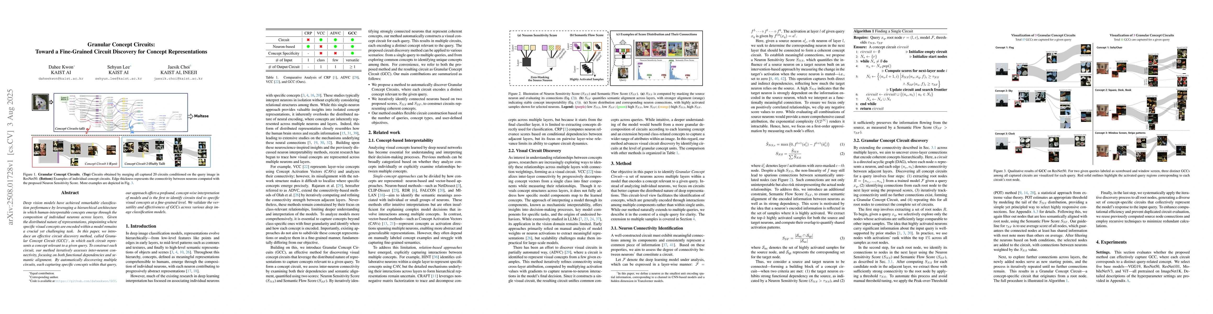 Deep vision models have achieved remarkable classification performance by leveraging a hierarchical architecture in which human-interpretable concepts emerge through the composition of individual neurons across layers. Given the distributed nature of representations, pinpointing where specific visual concepts are encoded within a model remains a crucial yet challenging task. In this paper, we introduce an effective circuit discovery method, called Granular Concept Circuit (GCC), in which each circuit represents a concept relevant to a given query. To construct each circuit, our method iteratively assesses inter-neuron connectivity, focusing on both functional dependencies and semantic alignment. By automatically discovering multiple circuits, each capturing specific concepts within that query, our approach offers a profound, concept-wise interpretation of models and is the first to identify circuits tied to specific visual concepts at a fine-grained level. We validate the versatility and effectiveness of GCCs across various deep image classification models.