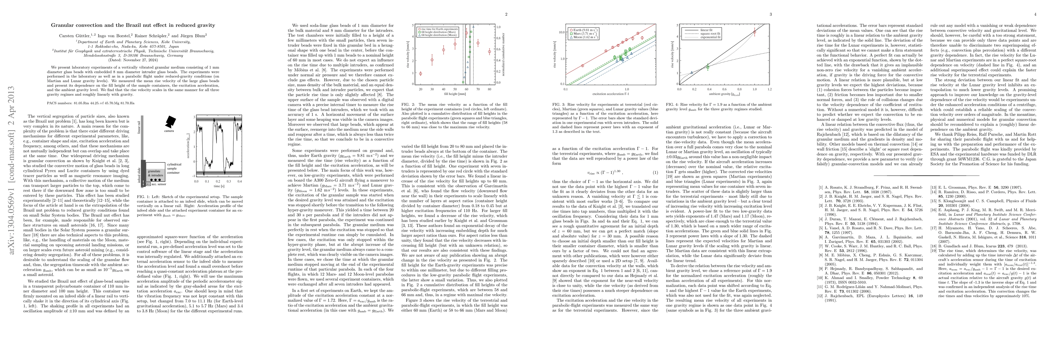 We present laboratory experiments of a vertically vibrated granular medium consisting of 1 mm diameter glass beads with embedded 8 mm diameter intruder glass beads. The experiments were performed in the laboratory as well as in a parabolic flight under reduced-gravity conditions (on Martian and Lunar gravity levels). We measured the mean rise velocity of the large glass beads and present its dependence on the fill height of the sample containers, the excitation acceleration, and the ambient gravity level. We find that the rise velocity scales in the same manner for all three gravity regimes and roughly linearly with gravity.
