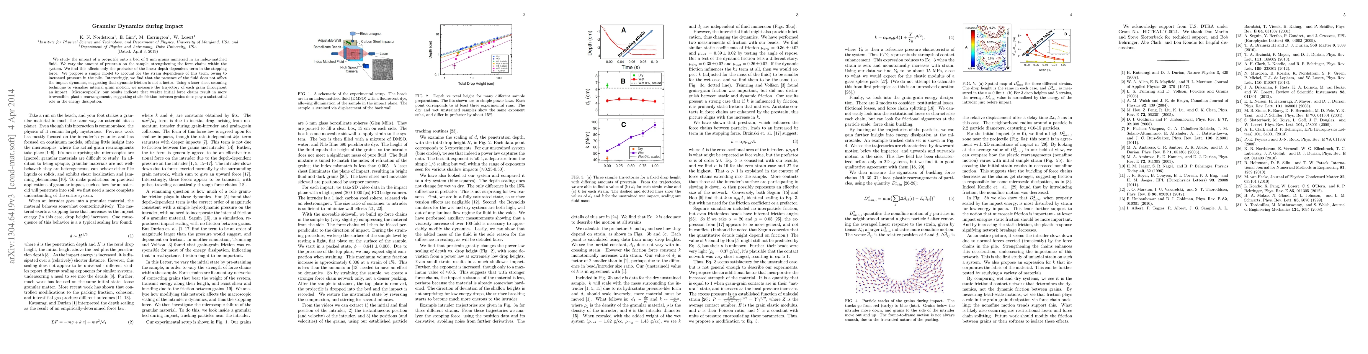 We study the impact of a projectile onto a bed of 3 mm grains immersed in an index-matched fluid. Specifically, we vary the amount of prestrain on the sample, strengthening the force chains within the system. We find this affects only the prefactor of linear depth-dependent term in the stopping force. We therefore attribute this term to pressure within the material, and not the grain-intruder friction as is sometimes suggested. Using a laser sheet scanning technique to visualize internal grain motion, a high-speed camera, and particle tracking, we can measure the trajectory of each grain throughout an impact event. Microscopically, our results indicate that weaker initial force chains result in more irreversible, plastic rearrangements during impact, suggesting static friction between grains does play a substantial role in the energy dissipation within the granular material.