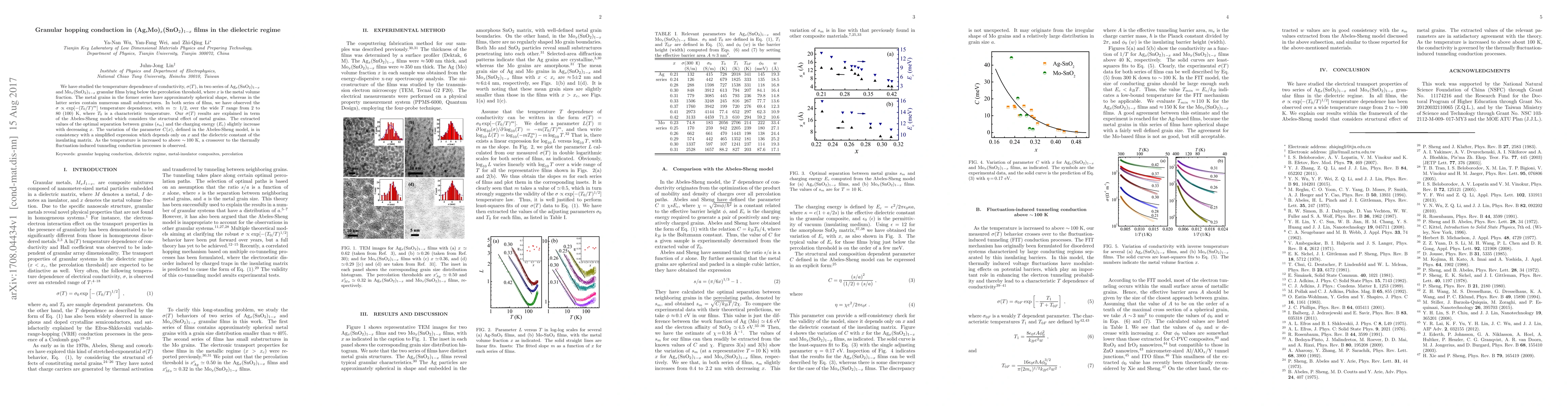 Researchers studied temperature-dependent conductivity in granular metal-insulator films, finding that their conductivity follows an exponential decay with temperature, and they attribute this to the Abeles-Sheng model considering structural effects of metal grains.