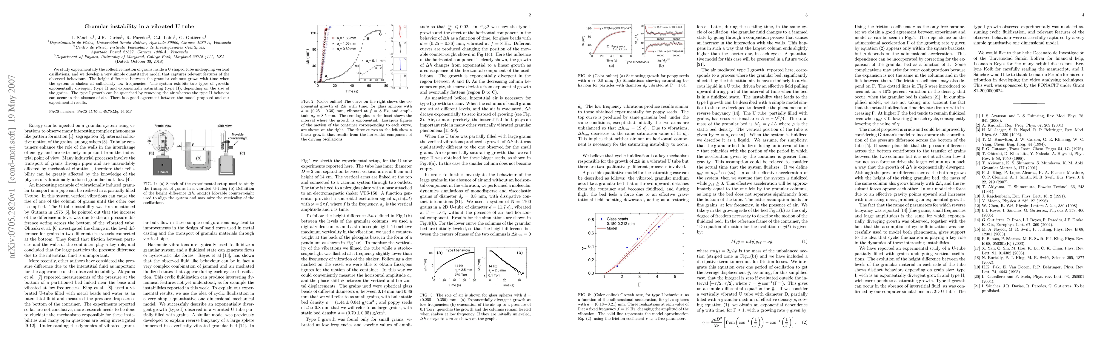 Researchers studied grain motion in a vibrating U-shaped tube, finding two types of growth that occur depending on grain size, and developed a simple model to explain the behavior.