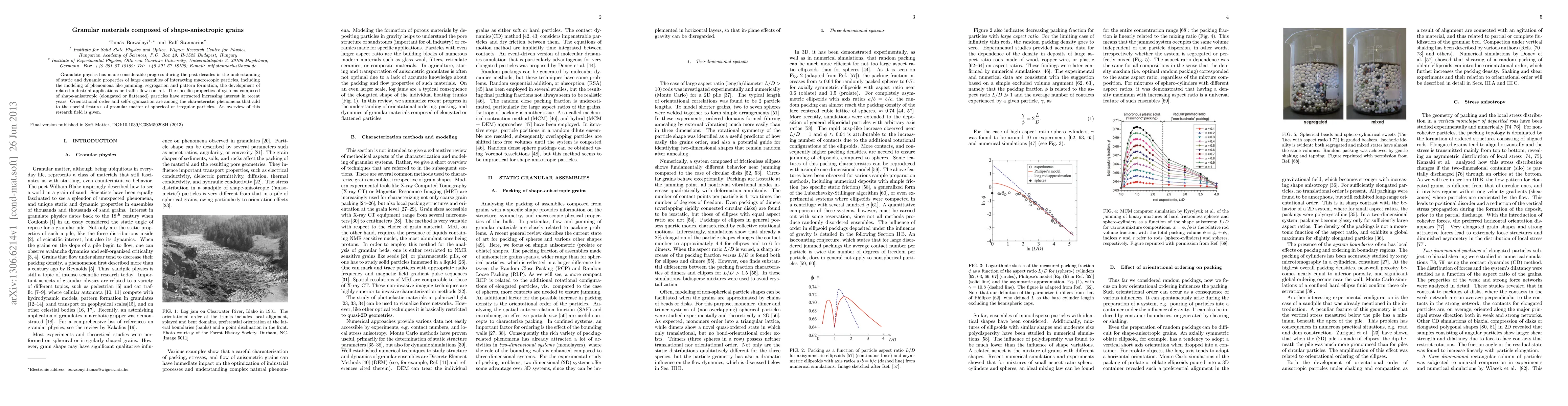 Granulate physics has made considerable progress during the past decades in the understanding of static and dynamic properties of large ensembles of interacting macroscopic particles, including the modeling of phenomena like jamming, segregation and pattern formation, the development of related industrial applications or traffic flow control. The specific properties of systems composed of shape-anisotropic (elongated or flattened) particles have attracted increasing interest in recent years. Orientational order and self-organization are among the characteristic phenomena that add to the special features of granular matter of spherical or irregular particles. An overview of this research field is given.