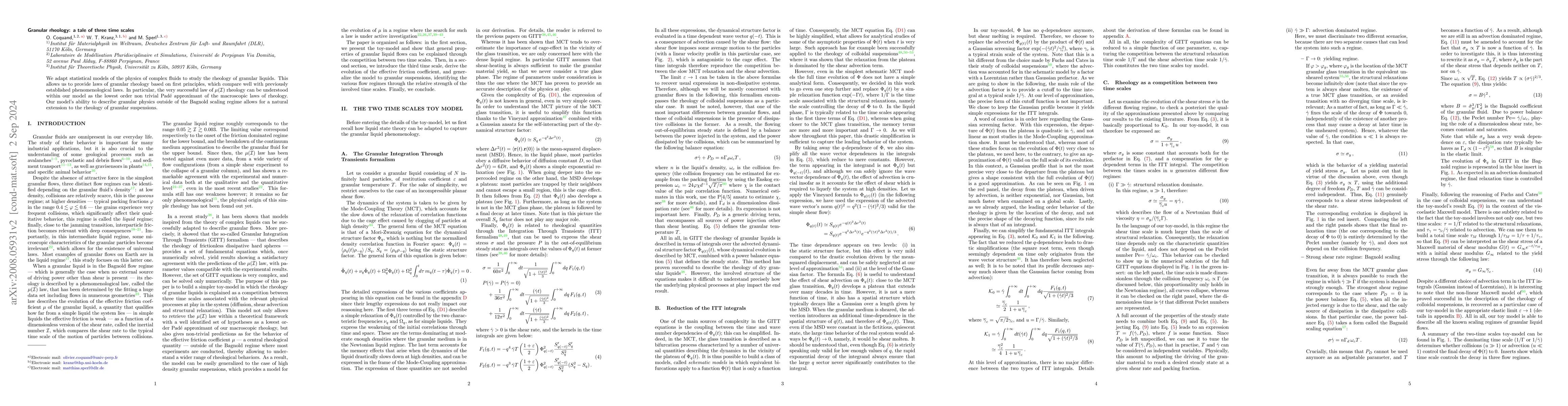 This paper presents a theoretical framework for granular rheology based on competition between three time scales, deriving the $\mu(\mathcal{I})$ law within a well-defined model and predicting non-trivial behavior outside the Bagnold flow regime, while also explaining similarities in friction coefficients between granular suspensions and dry granular liquids.