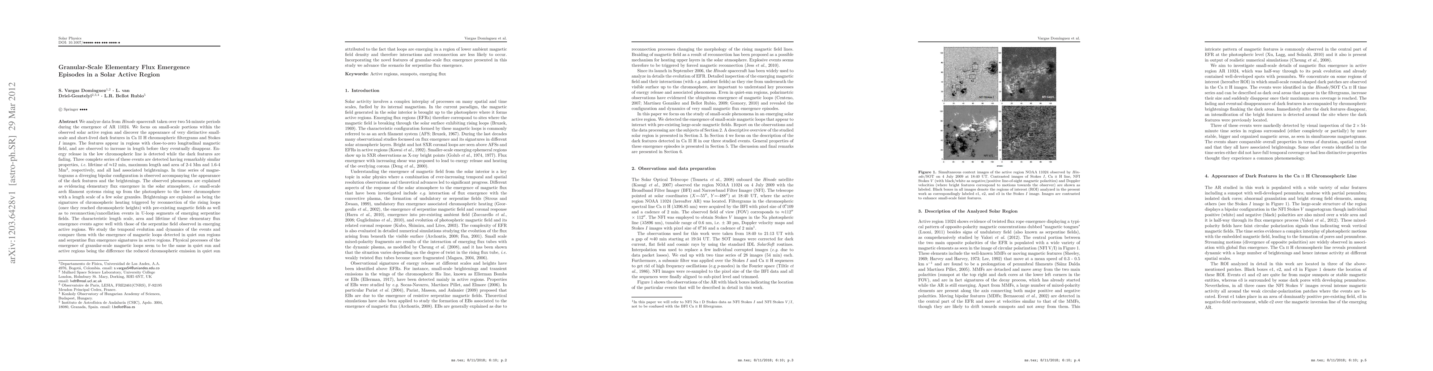 This study analyzes Hinode spacecraft data to reveal granular-scale flux emergence episodes in AR 11024, identifying small-scale dark features in chromospheric filtergrams linked to magnetic reconnection and serpentine flux emergence. The findings suggest that these features are signatures of rising arch filament systems and chromospheric heating due to reconnection events.