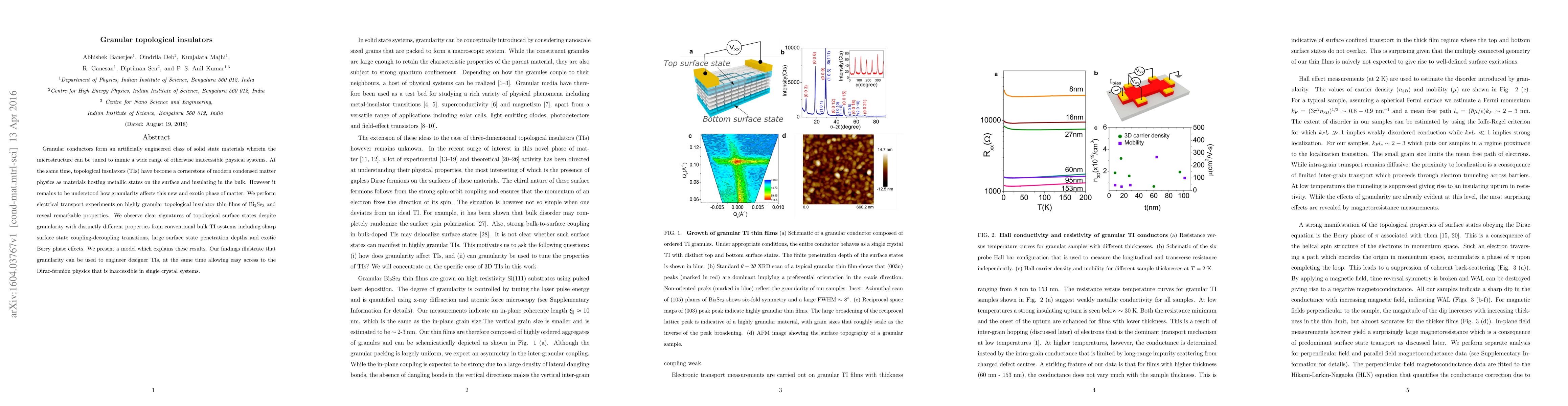 Granular conductors form an artificially engineered class of solid state materials wherein the microstructure can be tuned to mimic a wide range of otherwise inaccessible physical systems. At the same time, topological insulators (TIs) have become a cornerstone of modern condensed matter physics as materials hosting metallic states on the surface and insulating in the bulk. However it remains to be understood how granularity affects this new and exotic phase of matter. We perform electrical transport experiments on highly granular topological insulator thin films of Bi$_2$Se$_3$ and reveal remarkable properties. We observe clear signatures of topological surface states despite granularity with distinctly different properties from conventional bulk TI systems including sharp surface state coupling-decoupling transitions, large surface state penetration depths and exotic Berry phase effects. We present a model which explains these results. Our findings illustrate that granularity can be used to engineer designer TIs, at the same time allowing easy access to the Dirac-fermion physics that is inaccessible in single crystal systems.