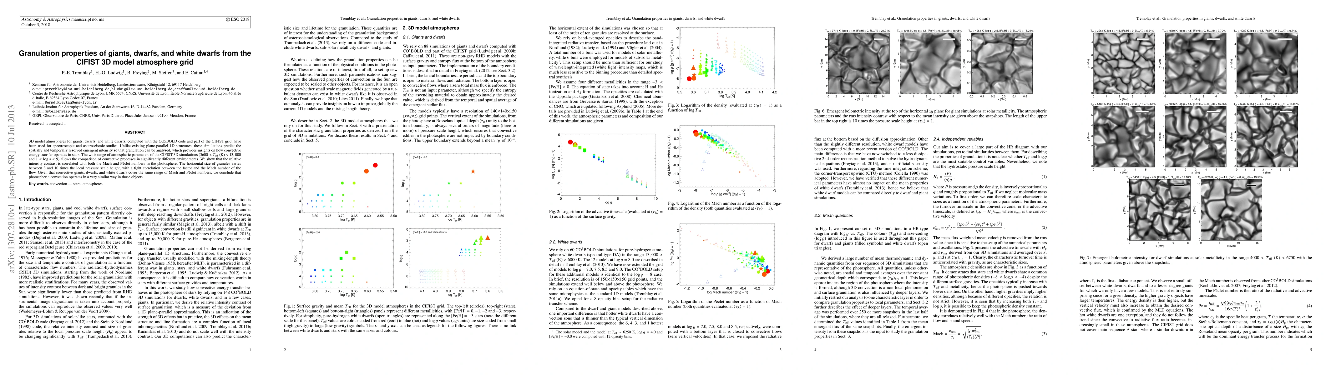 3D model atmospheres for giants, dwarfs, and white dwarfs, computed with the CO5BOLD code and part of the CIFIST grid, have been used for spectroscopic and asteroseismic studies. Unlike existing plane-parallel 1D structures, these simulations predict the spatially and temporally resolved emergent intensity so that granulation can be analysed, which provides insights on how convective energy transfer operates in stars. The wide range of atmospheric parameters of the CIFIST 3D simulations (3600 < Teff (K) < 13,000 and 1 < log g < 9) allows the comparison of convective processes in significantly different environments. We show that the relative intensity contrast is correlated with both the Mach and Peclet numbers in the photosphere. The horizontal size of granules varies between 3 and 10 times the local pressure scale height, with a tight correlation between the factor and the Mach number of the flow. Given that convective giants, dwarfs, and white dwarfs cover the same range of Mach and Peclet numbers, we conclude that photospheric convection operates in a very similar way in those objects.