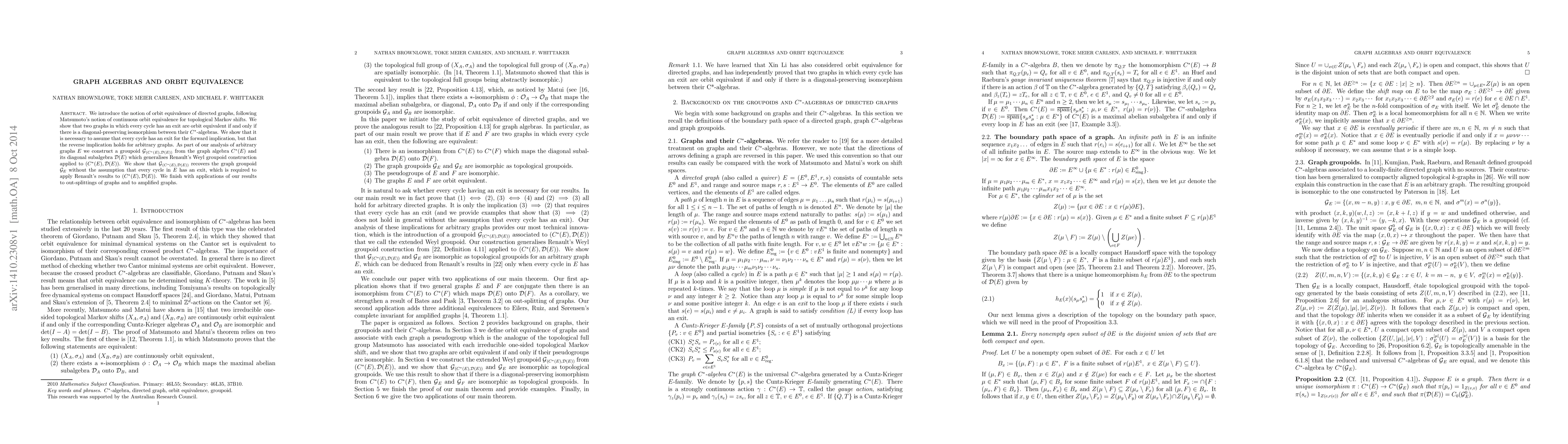 This paper introduces orbit equivalence for directed graphs, proving that graphs with every cycle having an exit are orbit equivalent if there is a diagonal-preserving isomorphism between their $C^*$-algebras. It constructs a groupoid from the graph algebra and its diagonal subalgebra to generalize Renault's construction, allowing recovery of the graph groupoid without the cycle exit assumption.