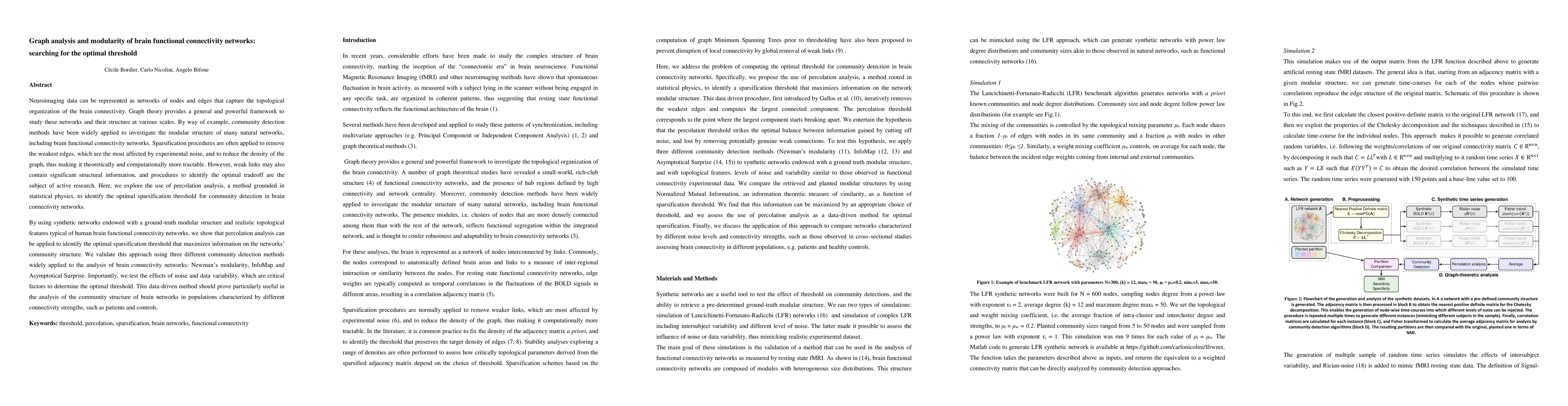 This paper explores the use of percolation analysis to determine the optimal threshold for sparsification in brain functional connectivity networks, aiming to maximize community structure information while minimizing noise. The method is validated using synthetic networks and three community detection algorithms, demonstrating its effectiveness in identifying optimal thresholds for analyzing brain connectivity in diverse populations.