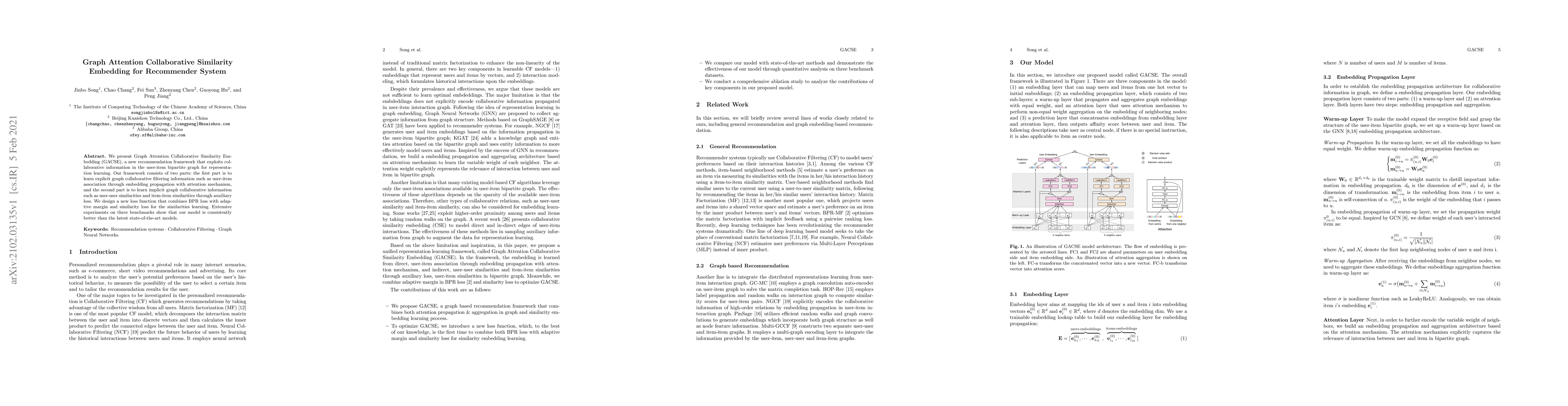The paper introduces Graph Attention Collaborative Similarity Embedding (GACSE), a recommender system framework that leverages collaborative information in user-item graphs for representation learning. It outperforms state-of-the-art models by combining explicit graph embedding with attention and implicit collaborative information through an adaptive loss function.