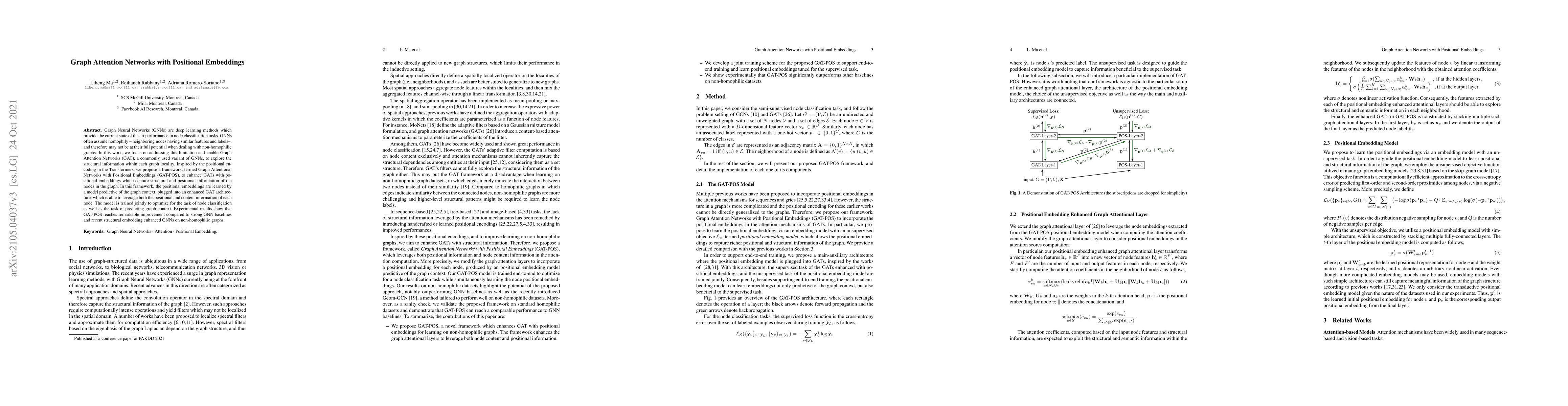 This paper proposes GAT-POS, a Graph Attention Network enhanced with positional embeddings inspired by Transformers, to improve node classification on non-homophilic graphs by leveraging both structural and positional information. Experimental results demonstrate superior performance over strong GNN baselines.