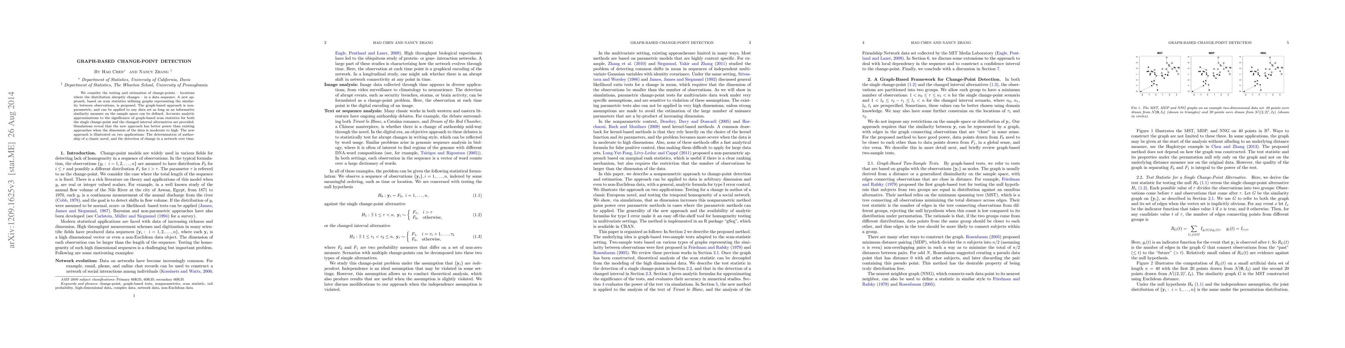 This paper proposes a graph-based method for detecting change-points in data sequences using scan statistics and similarity graphs. The approach is non-parametric and outperforms existing methods in moderate to high-dimensional data, demonstrated through applications on authorship attribution and network change detection.