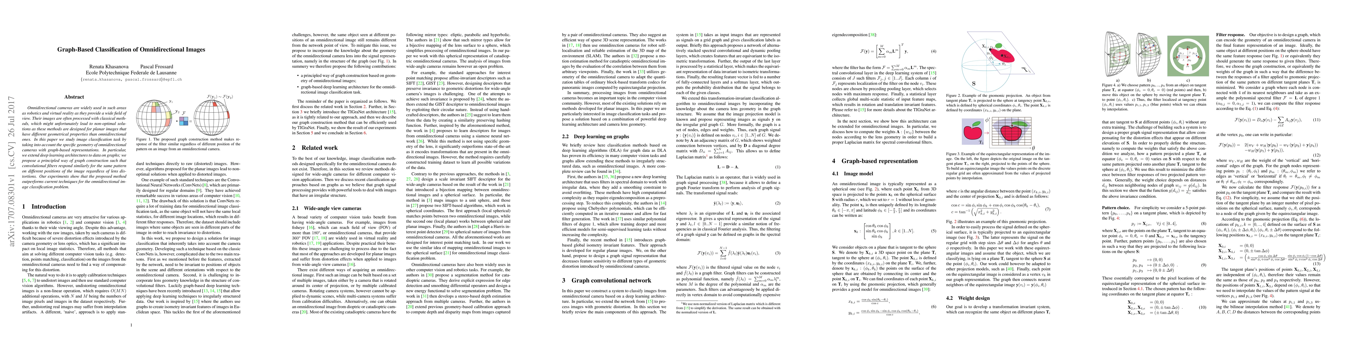 This paper proposes a graph-based classification method for omnidirectional images, leveraging deep learning on graph representations to account for the unique geometry of such images. The method outperforms existing techniques by constructing graphs that allow convolutional filters to generalize across distorted image positions.